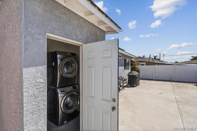 Move-in ready! This one won’t last. No HOA and a quiet residential setting in the Valencia Park neighborhood, this single-story 3 bed / 2 bath home in San Diego features 1,293 sq ft with unique benefits: an oversized, fully owned solar system for enhanced energy efficiency, stainless steel kitchen appliances, flexible layout for any use, central A/C throughout, and rare on-site RV/boat parking. Meticulously maintained, the open kitchen, living, and dining area creates a functional great room layout ideal for everyday living and entertaining. The spacious primary suite features an ensuite bath with dual-sink vanity, while the well-proportioned secondary bedrooms offer flexibility for a variety of living arrangements. The expansive yard space adds to the home’s appeal, providing room to enjoy outdoor living, recreation, and more. Set on a level ~7,200+ sq ft lot, the property features a large backyard offering exceptional flexibility for multiple vehicles, RVs, boats, storage, or outdoor entertaining. The lot also offers excellent ADU/JADU potential (buyer to verify), creating flexibility for future expansion or additional income. Conveniently located approximately 10–15 minutes from Downtown San Diego and the Gaslamp District, around 15 minutes to San Diego International Airport, and roughly 25–30 minutes to the beach. All while grocery stores, gyms, and everyday conveniences are less than a 5-minute drive away. A rare combination of turnkey, oversized owned solar, usable outdoor space, and parking flexibility, homes with this setup are hard to find in San Diego.
