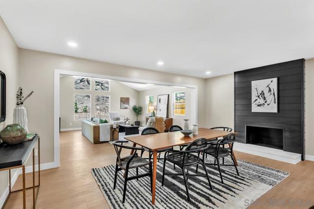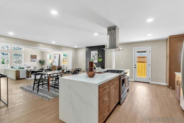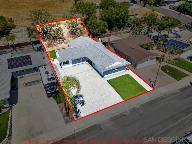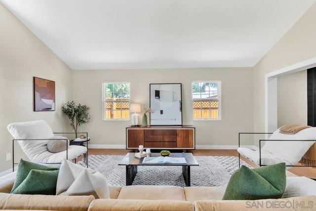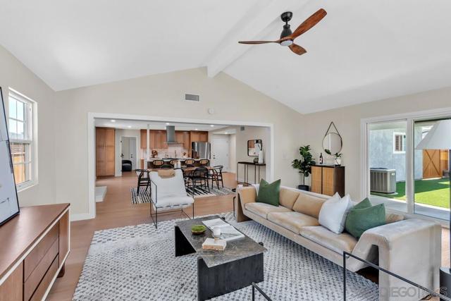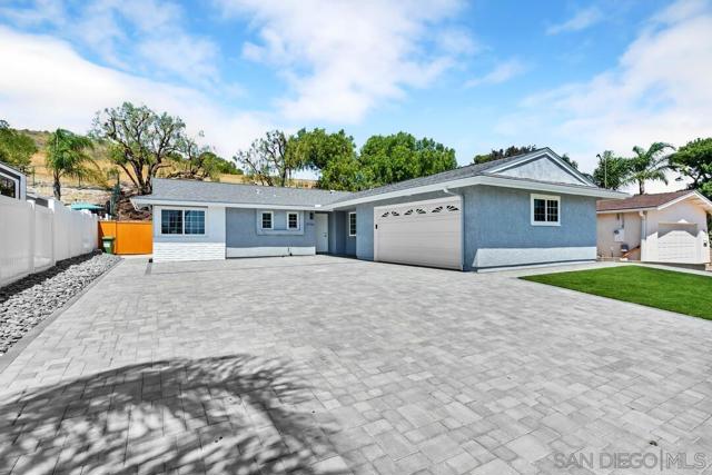 Beautifully renovated, turn key 4 bed 2 bath home in the heart of Santee, offering stunning mountain and evening views. This thoughtfully updated residence features a bright, open concept layout that seamlessly connects the remodeled kitchen, dining area, and spacious living room perfect for both everyday living and entertaining. The designer kitchen showcases brand new cabinetry, sleek quartz countertops, a stylish waterfall edge island with bar seating, and all new appliances. The expansive living room is highlighted by vaulted ceilings, creating an airy and inviting atmosphere. Luxury vinyl plank flooring flows throughout the home, complementing the modern upgrades. Both bathrooms have been tastefully updated with beautifully tiled showers, while additional features include plantation shutters and a generously sized, paved front driveway with room for RV parking. The low-maintenance front and backyard are finished with turf, offering year-round curb appeal and easy upkeep. Located in a quiet, desirable neighborhood just minutes from parks, the YMCA, Sportsplex, highly rated schools, shopping, dining, and more this home truly has it all! Won't Last Long Call Today To See It Before It's Gone!!