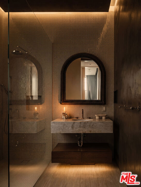 530 N La Jolla Avenue, a private and architecturally distinguished West Hollywood residence, offers four bedrooms, four baths, and nearly 4,000 square feet of seamless, elevated indoor-outdoor living. Originally conceived by USC's Dean of Graduate Architecture as a secure, design-forward retreat for a high-profile, award-winning studio head, the home was created with discretion and livability in mind; ideal for a discerning end user seeking both design pedigree and privacy. Design fixtures and finishes are thoughtfully unified throughout: floor-to-ceiling Fleetwood doors; Italian Poliform cabinetry and millwork; hand-applied Roman clay walls; soaring ceilings; and layered natural textures that bring warmth and depth to the interiors. An executive chef's kitchen anchors multiple entertaining spaces that flow effortlessly outdoors, while refinished flooring, redesigned kitchen surfaces, renovated bathrooms, a complete interior repaint, and a masterfully curated Bali-inspired landscaping package transform the grounds into a secluded, tropical oasis. Lush plantings, sculpted greenery, and intimate water features create a private sanctuary that feels worlds away from the city, while a resort-style swimming pool and multiple outdoor entertaining areas make it perfect for both intimate evenings and grand-scale gatherings. Offered fully furnished with a luxury designer package valued at nearly $500,000, the residence delivers a turnkey, exotic, and serene living experience.
