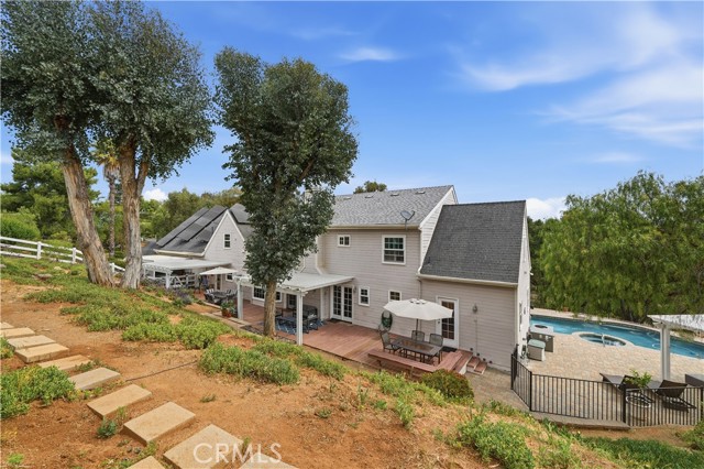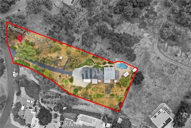 Welcome to a unique opportunity in Escondido—a spacious two-story home set on over an acre of beautifully treed land, lovingly owned by the same family for more than 30 years. This 4-bedroom, 3.5-bath residence offers a flexible layout ideal for multi-generational living with space for an ADU, featuring potential primary suites both upstairs and downstairs. An oversized office provides the perfect space for working from home, creative pursuits, or a private retreat. The home has been thoughtfully expanded to maximize both living and storage space. The original 2-car garage has been converted into a large game room or bonus living area, while an exceptionally oversized 3-car garage addition and covered carport offer ample room for vehicles, toys, and hobbies. Step outside to enjoy the peaceful, park-like setting with mature trees, a massive deck perfect for entertaining, and a separate gated pool and spa area—your own private oasis. With space, versatility, and decades of pride in ownership, this unique property offers endless potential in a serene North County setting.