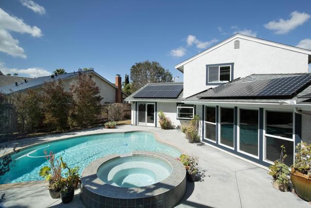 If you’ve been searching for a custom remodeled and expanded home in an award-winning school district on the famous Christmas Card Lane in Rancho Peñasquitos, your search ends here. This thoughtfully designed residence offers 4 bedrooms, a dedicated home office, 3.5 bathrooms, and a two-car garage with ample built in storage. A spacious bonus room—complete with its own kitchenette and bathroom and conveniently located near the pool—was designed to accommodate social gatherings of all kinds. With nearly 3,000 sq ft of highly flexible, open-concept living space, the kitchen sits at the heart of the home, creating a natural hub for everyday living and entertaining. Over 35 windows, sliders, and skylights flood the home with natural light. A one-of-a-kind covered rooftop deck overlooks a private backyard. The home is equipped with entertainers’ double ovens, ideal for hosting, and fully paid-for solar, delivering long-term energy efficiency and added value. Ideally located close to highly rated public elementary, middle, and high schools, and set in an established, desirable neighborhood offering a wide variety of sports, enrichment, and community amenities. A rare opportunity for flexible living, entertaining, and long-term comfort.
