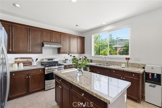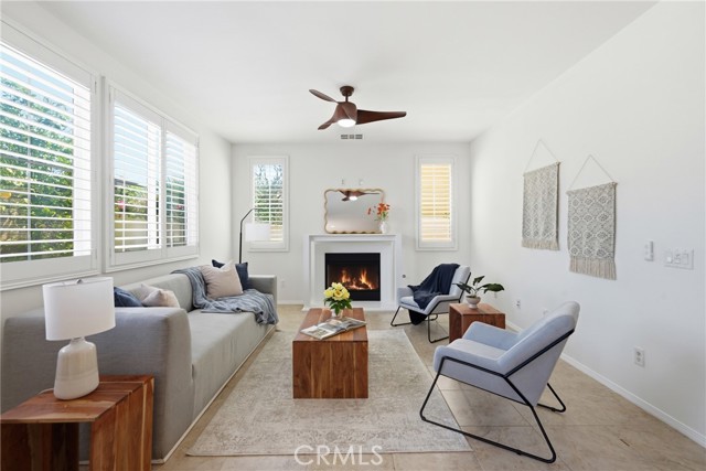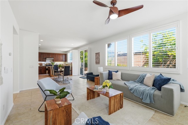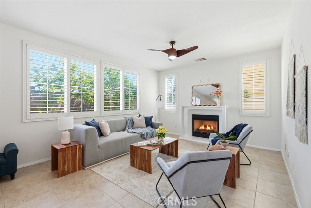 Located in the Laurel Gate community, this well-maintained 4-bedroom, 3-bath home offers approximately 2,745 sq ft of functional living space with a flexible layout and multiple gathering areas. An attached 2-car garage includes an EV charging outlet. The west-facing orientation brings strong natural light into the living areas and backyard patio, supporting comfortable outdoor use and sunset light. Inside, vaulted ceilings and an open floor plan connect the kitchen, dining, and family room with fireplace. The kitchen features a granite island, ample cabinetry, and recessed lighting. Plantation shutters and dual-pane windows enhance light control and energy efficiency throughout. A main-level bedroom and full bath provide options for guests, office use, or workspace separation. Upstairs, a loft functions as a dedicated living/media room, creating a second interior living zone. The primary suite includes a walk-in closet and en-suite bath. Two additional bedrooms and a full bath complete the upper level. Community amenities include a pool, spa, picnic areas, barbecue grills, and park space. The listing includes a 3D walkthrough and floor plan viewer for clear visualization of layout and flow. Nearby daily destinations support convenience: Seesaw Beans and Coffee, Porto’s Bakery & Cafe, groceries at Superior Grocers, and retail/dining at Shops At Buena Park. Quick connections to Interstate 5 and California State Route 91 support regional travel across Orange County and Los Angeles County.