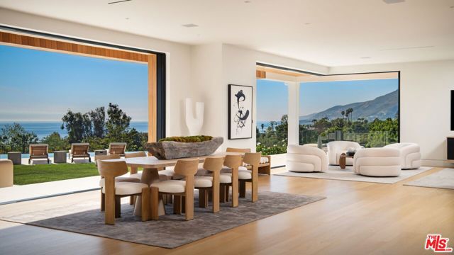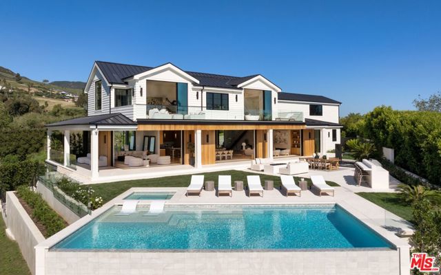 The Malibu Sunset Estate is a private coastal retreat set on approximately 1.5 flat acres in one of the area's most sought-after enclaves. A long, gated driveway leads to a newly completed three-level residence designed for effortless indoor-outdoor living, with panoramic ocean views from nearly every room. The main living spaces open seamlessly to expansive terraces, creating a relaxed flow for entertaining and everyday family life. The dining area connects naturally to a chef's kitchen equipped with top-tier appliances and generous workspace. The primary suite feels like a resort escape, featuring vaulted ceilings, sweeping ocean views, a wraparound balcony, spa-inspired bath, and dual walk-in closets. Additional bedrooms are well-positioned for comfort and privacy, along with a dedicated home office. All the latest and greatest amenities including a private theater, temperature-controlled wine tasting room, gym, an infinity pool that overlooks the Pacific Ocean, and parking on site for 40 cars. A detached ADU offers its own kitchen, living area, and bedroom for guests or extended stays. Just moments from Point Dume, Zuma Beach, fine dining, shopping, beaches, surfing, hiking, and the ultimate nature living. Here is your chance to live the Malibu sunset dream.