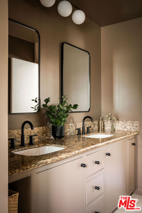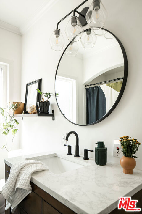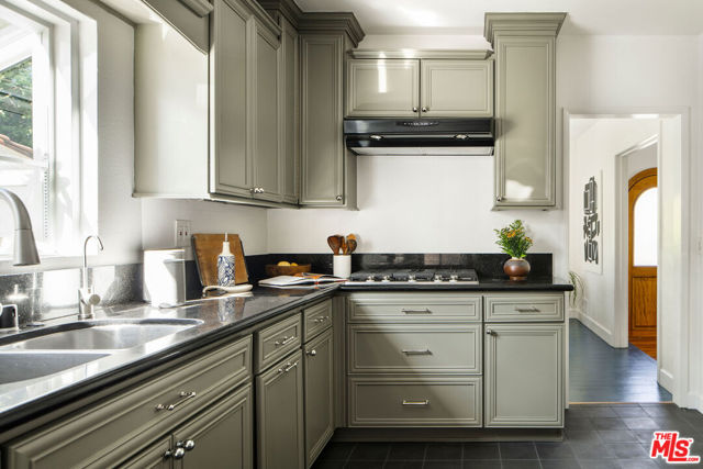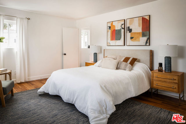 Spanish Revival bungalow in the heart of vibrant Leimert Park. Approaching the home you are greeted by two mature magnolia trees flanking a charming pathway. A recessed, arched doorway adds dimension and character to the classic Spanish facade. Inside, an impressive, high-pitched living room is flooded with light and features a unique original fireplace. The adjacent dining room with its playful blue wood floors, feels separate yet connected and flows to the kitchen. The kitchen features hand-poured concrete tiled floors that feel contemporary, yet timeless along with ample cabinets and a stone countertop. Off the kitchen is a laundry area and doors leading outside. There is a full bathroom and two bedrooms downstairs - a cozy bedroom and a larger one that could also work as a family room / den with direct access outside. Upstairs is the generously sized primary bedroom, which features treetop views and an ensuite bathroom with Zia tile, stone countertops and great storage. Outside, a private backyard offers a romantic courtyard feel with its stone pavers, high walls and citrus tree. A two car detached garage is well suited for a flex space - a perfect spot for a rec room, gym, or home office. The home features a seismically retrofitted (bolted) foundation with permits, a soft water filter + a reverse osmosis system, and a tankless water heater. When not enjoying your home, you are only a few blocks from shops and cafes including ORA, Harun, Dulan's, and near South LA Cafe, All Chill Ice Cream, World Wide Tacos, Fuegos LA, Highly Likely, Alta, Johnny Pastrami, John and Vinny's, Hilltop, Somerville, Damn I Miss Paris, Cento, Mizlala, Tartine and many more.The nearby K-Line or E-Line trains provide accessibility to Downtown, LAX, USC / Exposition Park, Culver City or the beach in Santa Monica. This is a great opportunity to live in a special pocket of Leimert Park, one of LA's first planned communities which was designed by the Olmsted Brothers - of New York Central Park fame. The Leimert Park development served as a model of urban planning with a unique focus on Village living in mind. Densely planted trees, park-like medians, and reduced automobile traffic near amenities made for a livable and beautiful community that can be felt today, nearly a century later.