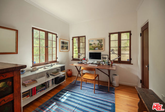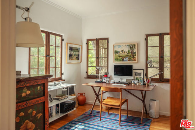 In a city built of lore, myth and magic, few neighborhoods are more storied than Laurel Canyon. It is home to all that bewitches and bewilders in Los Angeles. This quintessential, 1920's Spanish bungalow offers a chance to be part of its legacy. Replete with classic architectural details; wood casement windows, bougainvillea, beamed ceilings, hardwood floors, wood-burning fireplace, mission tiles, dappled light and foliage framed outside every window. 2 bedrooms, each en suite, and a flexible bonus space ideal for an office, studio, or guest room. An updated kitchen and living spaces that flow to outdoor patios and garden nooks; offering quiet for morning coffee, or intimacy for evening gatherings. Located in the Wonderland School District. A rare mix of privacy and proximity: calm that's only moments from the heart of the city. It might be time for your season in the canyon.