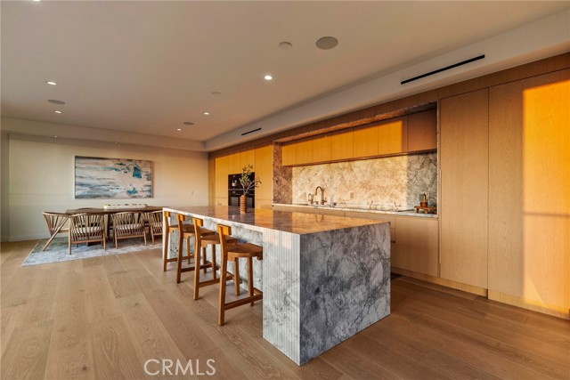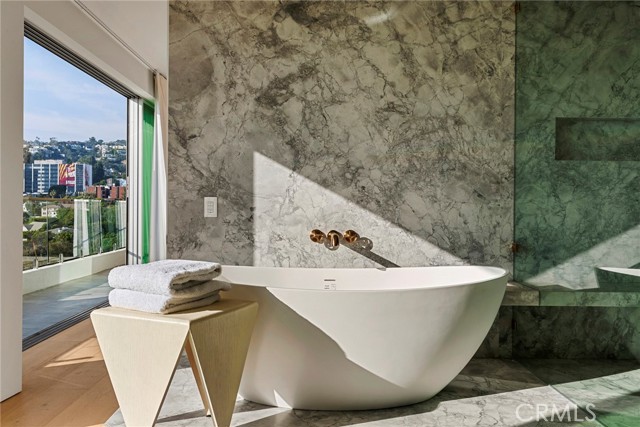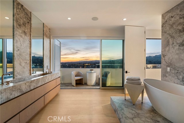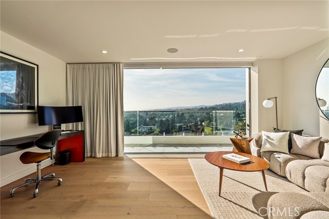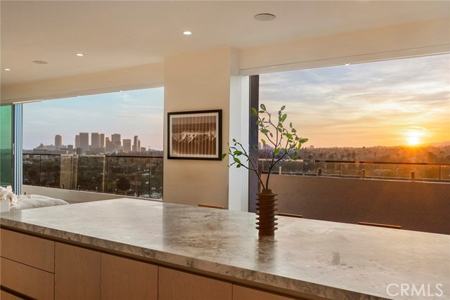 Welcome to The Penthouse at Doheny. 130 feet of sliding glass opens up to unobstructed, purely private, and absolute explosive views of all parts of the city. Experience nightly picture perfect sunsets into the Santa Monica mountains. The team at Schneider Development spared no expense in insuring a calm, and thoughtful design that executed flawlessly on complimenting the priceless geographic location of the Penthouse so that it flows into the natural terrain the views bring. Earthy tones of the wood European kitchen cabinetry, and natural stone countertops throughout the residence bring a sense of peace. The Penthouse amenities do not disappoint… Miele double oven, with convection oven and coffee maker, along with 6 burner electric range make this kitchen perfect for all aspects of cooking. 3 oversized bedrooms all have en suite bathrooms and walk in closets, and of course, glass that fully opens to the balcony with incomparable views every which way you look. The primary bedroom consists of sleeping quarters, sitting area, wet bar, en suite primary bathroom with a long linear stone sink with faucet on each side, and tub and shower that will make you feel like you’re on vacation every day as you enjoy the views with full privacy. The department store level walk in closet has two entries from both sides of the primary suite. Functionally, there is a dedicated laundry room with linen cabinets, and a hallway of storage and coat closets, with an AV space that powers the Control 4 smart home system, with unit wide surround sound, including in-wall subwoofer in the main living area. Building amenities include a one floor private and easy access to the rooftop entertaining area which includes a gym, pool with unobstructed 360 degree views of the city, ample sun beds and chairs, with multiple fire pits, and open space for yoga mornings or banquets. The Penthouse comes with a storage space, and 3 parking spaces which is run by the 24hr valet service, and occupied by a 24 hour door man at lobby. The building underwent a full scale renovation in 2016. The Penthouse itself is brand new, with every wall, material, and interior pipe replaced and reimagined. This is truly a One of One opportunity for a discerning buyer that will never be duplicated.