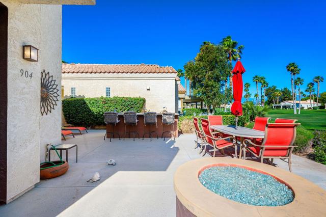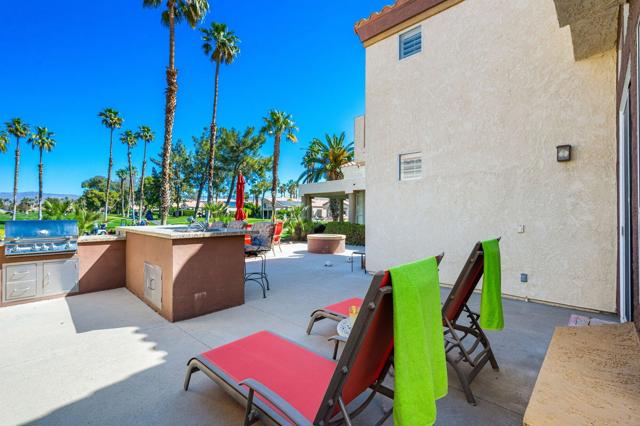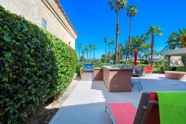 Welcome to Desert Princess, a guard-gated community in Cathedral City. Prepare to be enchanted by this bright Villa, perfectly located on the golf course. Step onto the extended patio, offering ample space for entertaining. Fire up the grill in the impressive outdoor kitchen, unwind with a refreshing libation, & savor breathtaking sunsets or the distant sight of golfers. Embrace cozy evenings around the large fire pit under the starlit sky. This furnished home has been meticulously remodeled, boasting fabulous mountain views & an unobstructed vista of the fairway, ensuring tranquility & serenity. Enjoy these picturesque views from the two spacious primary suites, as well as the inviting great room. Immerse yourself in luxury with large tile flooring on the diagonal, custom plantation shutters, soaring ceilings, & contemporary baths, complemented by abundant closet & storage space.Desert Princess beckons with its renowned 27-hole PGA Championship golf course, acclaimed by Golf Digest. The perks of the HOA, includes a Social Membership to the vibrant club with no monthly minimums, 20% discounts on food, Tennis & Fitness Membership, Cable + HBO/Showtime, exterior building maintenance, insurance, water, and 24-hour patrol. Delight in the community's 33 pools & spas. Conveniently located near PSP, & Downtown Palm Springs, DPCC has easy access to dining, shopping, hiking, biking, tennis, pickleball, and Acrisure Arena.