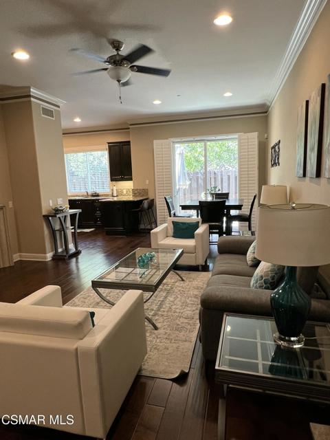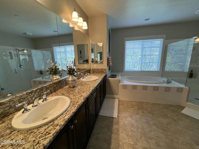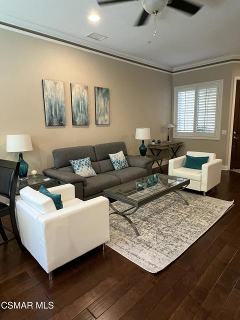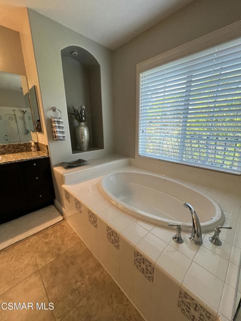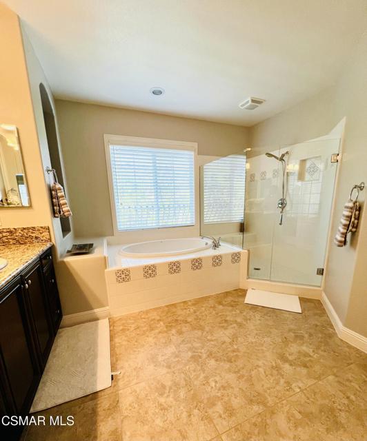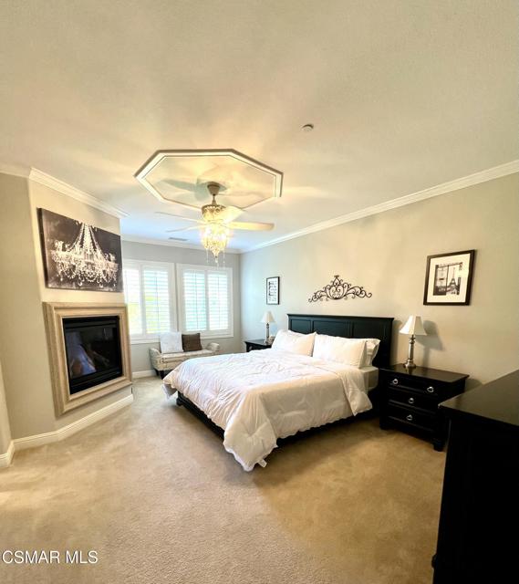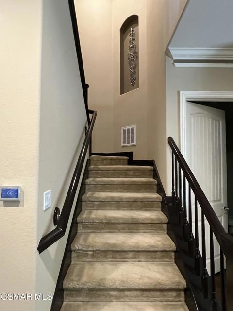Welcome to the Vistas at Indian Oaks, a fantastic gated community sitting at the top of the hill! Enjoy your luxury 3bd, 3.5 bath fully furnished townhome with over 1900 square feet! Coming through your private courtyard entrance, you will find a living room / dining area with beautiful appointments, fireplace, tall ceilings and downstairs powder room. The gourmet kitchen features beautiful cabinetry, stainless steel appliances, granite countertops and a breakfast bar. Outside of the dining area you will find a peaceful patio to sit and enjoy your outdoor space. Upstairs, you will find more tall ceilings and 3 bedrooms. The primary bedroom is truly relaxing with fireplace and beautiful views. The en-suite bathroom features a double vanity, separate soaking tub and walk in closet. 2 secondary bedrooms are also upstairs, one used as an office and one featuring and en-suite bathroom. The third full bath sits in the hallway along with the upstairs laundry room. This home also features plenty of storage, a Tesla power wall energy backup system, and an attached 2 car garage. The home comes fully furnished with beautiful upscale appointments and artwork to enjoy. Enjoy the the conveniences of nearby freeway access, hiking trails and the Vineyards at Porter Ranch shopping center. The community also features a pool and spa with great views! Welcome Home!