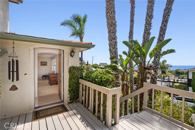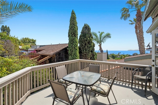 Experience refined coastal living in this ocean-view residence, ideally located in one of Laguna Beach’s most desirable neighborhoods. Just a short stroll from acclaimed restaurants, art galleries, world-renowned beaches, and the vibrant heart of Laguna Village, this timeless home offers the ultimate blend of charm, lifestyle, and convenience. The property beautifully combines classic architectural character with modern comforts. Offering four bedrooms and three-and-a-half bathrooms, the flexible floor plan includes a separate entrance to the lower-level rooms, ideal for guests, extended family, or a creative studio space. A main-level bedroom allows for single-level living and connects to an additional room that can serve as a den, media room, or family room, with access to a spacious finished storage area. At the heart of the home, a sunlit family kitchen with ample storage opens to a generous ocean-view deck—perfect for al fresco dining, garden views, and breathtaking sunsets over Catalina Island. A flat grassy yard and mature landscaping create a peaceful, private outdoor retreat. The primary suite is a tranquil sanctuary, featuring sweeping ocean views, natural light throughout, vaulted ceilings, and an oversized skylight that fills the space with sunshine by day and starlight by night. The en-suite bath offers garden views, a soaking tub, and a separate shower for a spa-like experience. The home’s prime location makes it easy to leave the car behind and explore magnificent beaches, scenic parks, and the celebrated restaurants, cafe´s, galleries, and boutiques that make Laguna Beach such a coveted destination. This property promises an unparalleled coastal living experience.