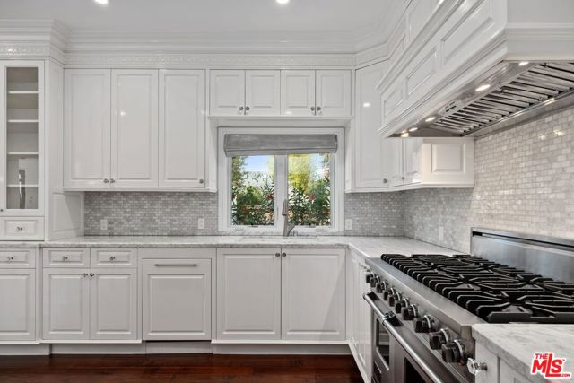 Set on a leafy street in Santa Monica. A gated courtyard that provides a sense of privacy and sanctuary, extending throughout the interiors. The thoughtfully designed living spaces include a grand two-story entry that leads to a bright great room anchored by a marble fireplace, with French doors opening to the patio. This Spanish-style residence strikes a balance between sophistication and a family-friendly atmosphere in one of Los Angeles' most sought-after neighborhoods. The design emphasizes indoor-outdoor living, with French doors leading to a private, beautifully landscaped yard. Located north of Montana Avenue, the property is a short distance from Santa Monica Beach and nearby top-rated schools, enhancing its appeal as a tranquil, light-filled yet convenient retreat. On the main level, you'll find a light-filled study/den with a gas fireplace, a formal dining room, and a chef's kitchen with high-end appliances and a wine fridge. The adjacent great room connects seamlessly to the outdoor entertainment area. Additionally, there is also an optional primary bedroom on the main level that can serve as a guest room, family room, or exercise space. Upstairs, the primary suite is designed as a private sanctuary and includes a walk-in closet and a spa-like bathroom. French doors offer a lovely view of the backyard. Three additional bedrooms and extra bathrooms are also located on this level.