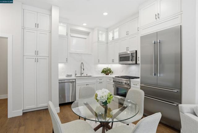 This luxury townhouse is in the heart of Lafayette, just minutes from BART, the Lafayette Reservoir, and Lafayette’s fine dining and shopping. The unit is approximately 1,126 square feet over two floors in dazzling white, with two bedrooms, two and one-half baths, and a private, attached garage offering EV charging. Enter into the open-concept Great Room on the first floor; the dining area, well-appointed kitchen, and a powder room lie just beyond. A stairway rises from the Great Room to the bedroom floor, with two spacious bedrooms, each with its own private, en-suite bath and walk-in closet, and a laundry room with a stackable washer/dryer. Residents enjoy an exclusive community clubhouse with a kitchen, lounge, sun decks, barbecue area, and fully equipped fitness center with 24/7 access. Leave the car in the garage and easily walk downtown, or to the miles of nearby hiking/biking trails; in particular, one may count on running into friends and neighbors on the Reservoir’s famed hiking trail or in its picnic areas. Award-winning public and private schools are nearby, and the 24 highway is close at hand to head east to Walnut Creek, or west to Oakland, San Francisco, and the rest of the Bay Area. Quick close of escrow!