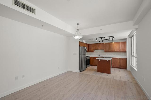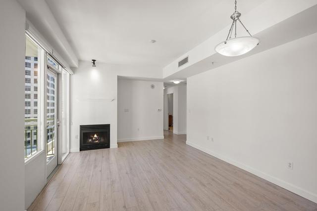 This 12th floor Treo residence offers Downtown San Diego skyline views from every room! Modern LVP flooring runs through the open living area and bedroom. Floor-to-ceiling windows flood the condo with natural light controlled by chic Hunter Douglas silhouette shades. The kitchen showcases warm wood cabinetry, quartz counters and center island, a full suite of upgraded stainless appliances with gas range, built-in microwave, and dishwasher - all under vivid lighting. The bedroom offers two closets, one with a custom organization system, plus a bathroom with a quartz vanity and combo shower/tub. Other features include a private balcony, fresh paint throughout, front-load washer and dryer, gas fireplace, RARE private storage in a temperature-controlled room, and a secured parking space on the first floor. Treo sits at the center of it all: walkable to the waterfront, Little Italy, the Gaslamp, and everything that makes downtown San Diego worth living in. Great building amenities including pool, hot tub, gym, BBQs, community rooms, and staffed lobby with LOW HOA dues. Long regarded as one of the best values in Downtown San Diego, the Treo HOA is exceptionally well managed, keeping dues low while maintaining a high level of building services and amenities. Enjoy a heated pool and spa, fitness center, multiple recreation and meeting rooms, barbecues and peaceful courtyard, plus security and concierge services. The lobby, hallways, and amenities have all been recently refreshed to foster a warm contemporary feel. Walk to the multitude of eateries and shops in Little Italy or Portside Pier, or take a slightly longer stroll to Seaport Village in the Marina District or the bustling Gaslamp Quarter. Treo is both FHA and VA approved.