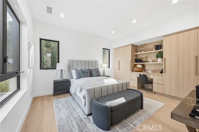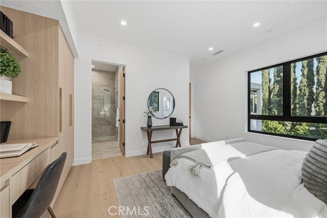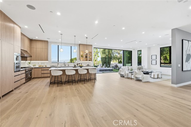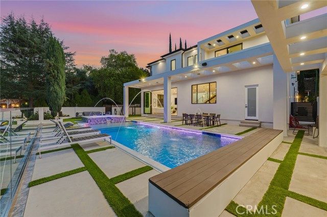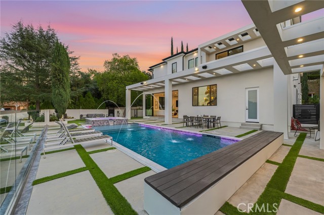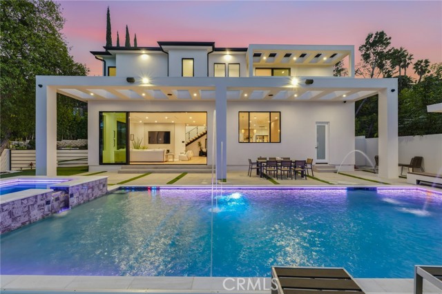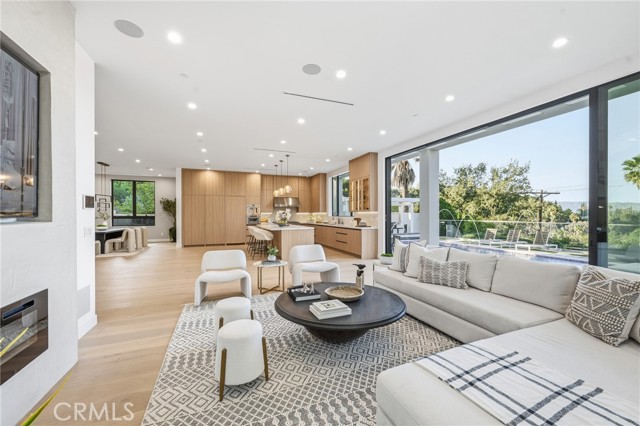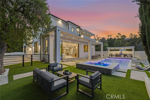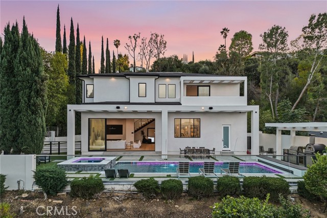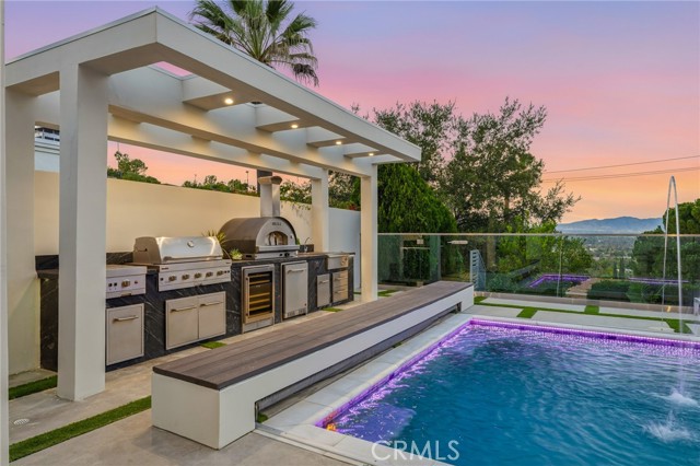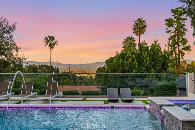 Ultra-private gated Encino compound offering rare seclusion, security, and refined design on an expansive over 18,500 Sqft lot. Fully enclosed with security fencing and mature landscaping, the property delivers complete privacy from every direction while capturing tranquil valley and green nature views. From the moment you enter through the gates, the residence feels intentionally removed from the outside world quiet, serene, and thoughtfully composed. Designed by one of Los Angeles’ most respected interior designers, the approx. 5,717 Sqft home showcases soaring ceilings, abundant natural light, and an open-concept layout that balances architectural presence with warmth and livability. High-end finishes, custom carpentry, and curated materials define every space, creating a cohesive aesthetic that feels luxurious yet inviting. The floor plan offers five generously sized bedroom suites, a private office ideal for focused work, a dedicated theater, and an oversized walk-in pantry designed for daily ease and entertaining. The primary suite serves as a private retreat with spa-inspired bath, expansive steam shower, and serene outlooks framed by lush greenery. Outdoor living is designed as a true extension of the home, featuring a resort-style pool and spa with sweeping views and total privacy, fire pit, and a fully equipped outdoor kitchen with BBQ, pizza oven, cooktop, refrigerator, and temperature-controlled beverage cooler. An additional approx. 300 SF outdoor gym and storage/doghouse add versatility. Smart home technology enhances comfort, security, and efficiency throughout. A large three-car garage and gated driveway provide ample secure parking. A rare Encino offering that prioritizes privacy, design, and lifestyle where luxury feels intentional and value is found in what cannot be replicated.
