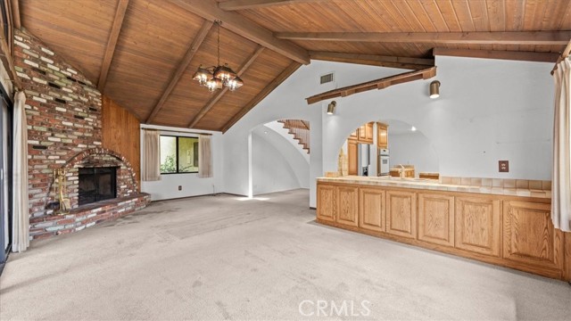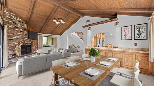 This view home will not last! The golf course and sunset views are spectacular! Welcome to one of the most coveted locations in all of the North La Verne Hillside. You will be delighted the moment you pull up to this warm, Spanish-style residence, with its arched entryway, handsome brick-paver driveway, and a striking wood pergola courtyard that sets the tone before you ever step inside. Enter and discover a spacious living room anchored by a wood-paneled fireplace surround and a graceful staircase leading to the home's true showpiece: a dramatic loft and game room with soaring vaulted ceilings, exposed wood beam detail, and a second brick fireplace. This is a room unlike anything the neighbors have. The kitchen features warm wood cabinetry, tile countertops, and a functional layout with an adjoining dining area open to the great room. The bedrooms are well-proportioned, clean, and quiet, with windows framing the surrounding hillside. The home is in original condition and immaculately presented throughout. Pride of ownership shows in every room. Step into the backyard and prepare to stop what you are doing. A substantial covered patio and generous deck area flow onto an expansive green lawn. The elevated position delivers open sky in every direction. The fairways of the San Dimas Canyon Golf Club stretch across your full sightline, and the sunsets here earn their own audience every evening. The second-story balcony offers another vantage point that you will often return to. The aerial photography confirms what the address promises: this home sits perched high above the valley floor, & the views are real. Come at dusk, and you will understand. Commuter-friendly, the 210 Freeway is at the southern end of North La Verne, placing Pasadena within 30 minutes & downtown Los Angeles within an hour. For professionals seeking genuine distance from the city without surrendering their commute, this location delivers. Marshall Canyon Regional Park, 120 acres of hiking & mountain biking trails, is minutes away, as is Marshall Canyon Golf Course. The Bonita Unified School District serves this address, with Oak Mesa Elementary, Ramona Middle School, & Bonita High School. All top-rated schools. A hillside address with a vaulted loft, a perfect space for a pool table, a covered pergola, an outdoor fireplace, and a golf course view, all located on a quiet hillside cul-de-sac. What more could you ask for? Please call for your personal tour. This house will not last!