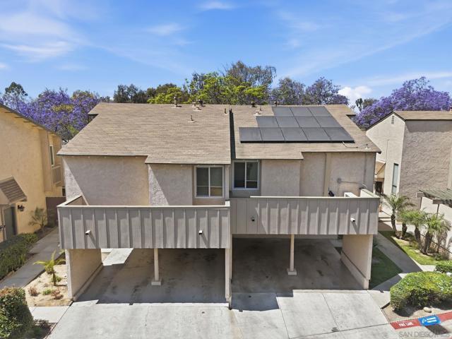 THE best value in San Diego! Townhome 4 bedrooms, 2.5 baths, 4-car carport, a yard, community pool, clubhouse AND tennis courts located close to everything and SUPER low HOA. Rare opportunity to buy in Caminito Grove. Solar with SunRun, buyer to assume. Private patio and in-unit washer and dryer!
