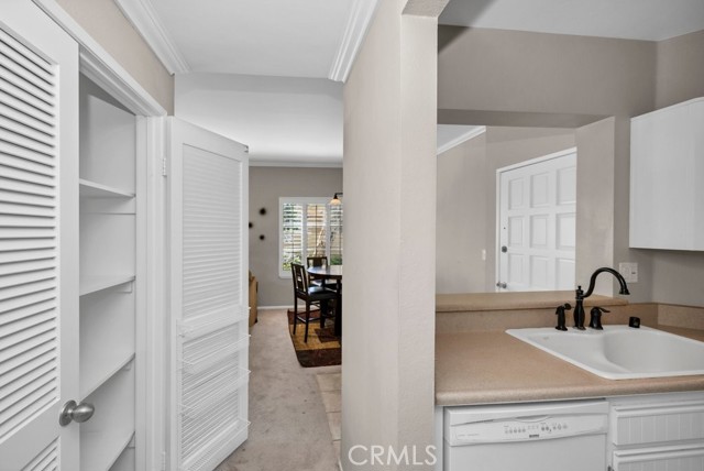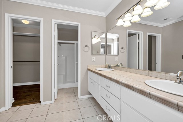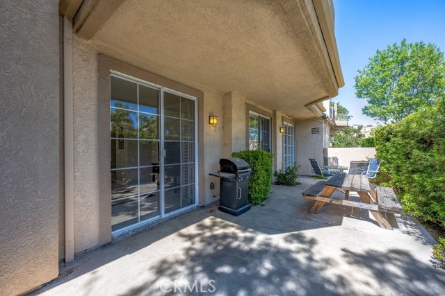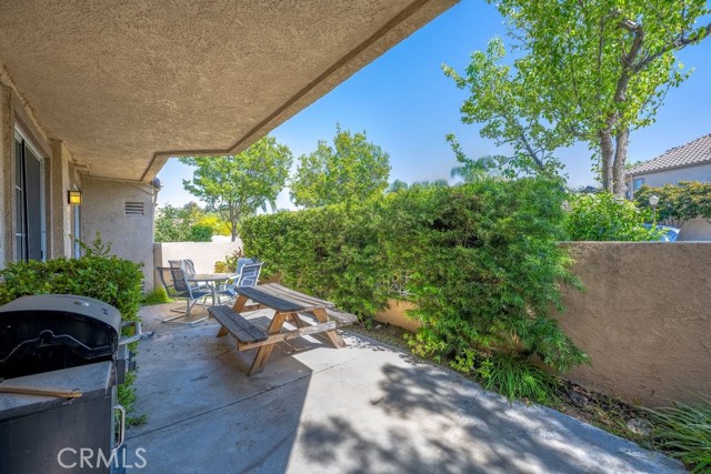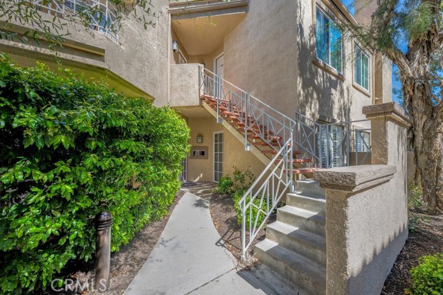 Welcome to the highly sought after Santa Fe community in the heart of Valencia. This rare ground level corner unit offers an incredible blend of convenience and privacy with absolutely no stairs and only one shared wall. Buyers will love that this complex is FHA approved, opening the door to an excellent homeownership opportunity with lower down payment options. Whether buying your first home or looking for a seamless single story transition, this two-bedroom, two-bathroom layout is designed for effortless living. Step inside to a welcoming open concept floor plan where the kitchen flows perfectly into the dining and living areas. Timeless plantation shutters are featured throughout the home. The spacious primary suite serves as a quiet retreat, complete with a walk in closet and an en suite bathroom featuring a dual vanity sink and a walk in shower. Just outside, you will discover a large private back patio, a rare find for condo living that expands your space outdoors for relaxing weekends. A major highlight of this property is the exceptional storage. The unit includes two separate, detached two car garage. This setup provides the full capacity of a two-car garage, giving you ample room for parking, storing weekend toys, outdoor gear, and extra belongings. Residents also enjoy beautifully maintained grounds, a sparkling pool, and a relaxing spa. The location defines convenience. You are positioned directly behind the Whole Foods and Kohl's plaza, and right across the street from the Valencia Town Center. Miles of scenic walking paseos, premier shopping, endless dining, community events, and quick freeway access are all within reach. Properties offering this level of walkability, privacy, storage space, and FHA financing do not come up often. Schedule a tour to experience this fantastic home firsthand.