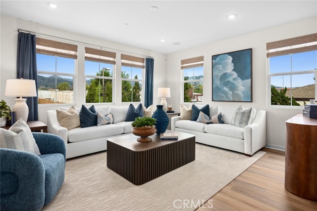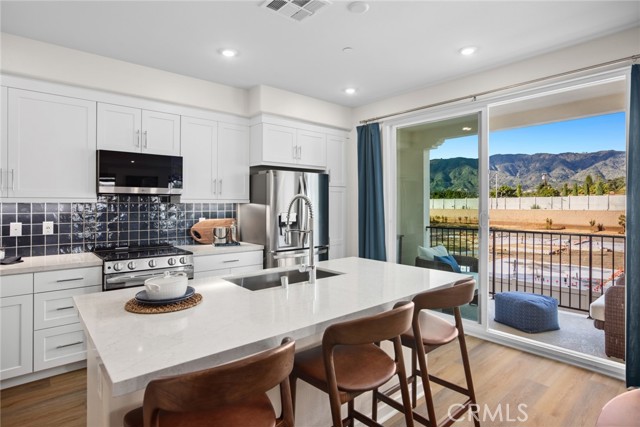 Take advantage of all the new construction features in this sophisticated 2-bedroom townhome. It even includes a large first-floor porch to welcome your guests in style.. Great room has adjacent powder bathroom, center island with brushed nickel farm sink. Countertops upgraded with quartz and decorative full splash. Oversized covered balcony that opens into main living space for entertaining and California weather. Private third floor living boasts bedroom #2 with in suite bath#2 and oversized primary with full walk-in bath and closet. Upstairs laundry and 2 car garage! 26 Guest Parking spots for family and friends to visit! GREAT LAYOUT!