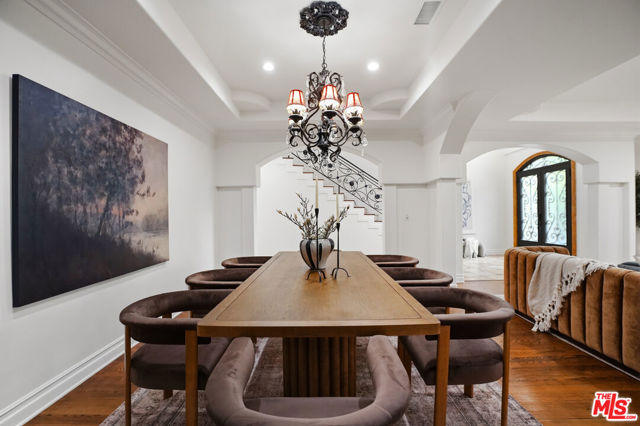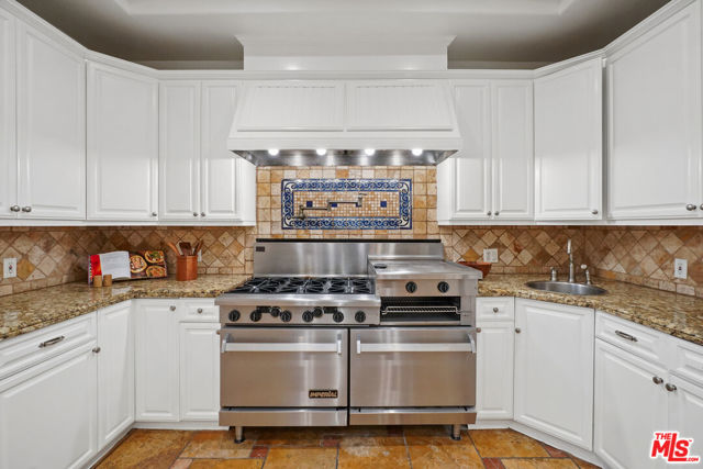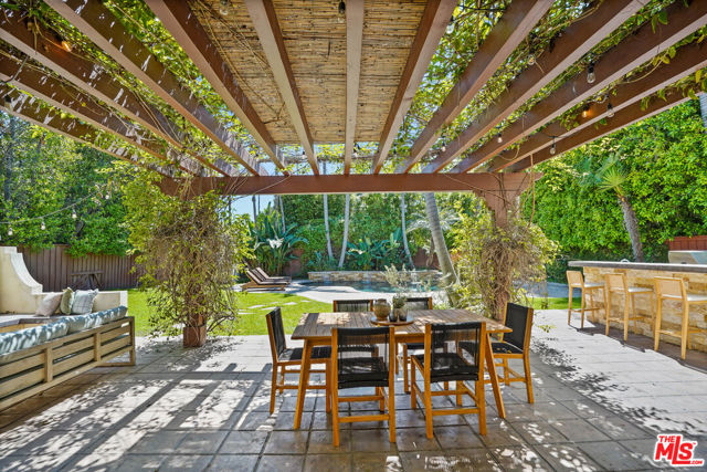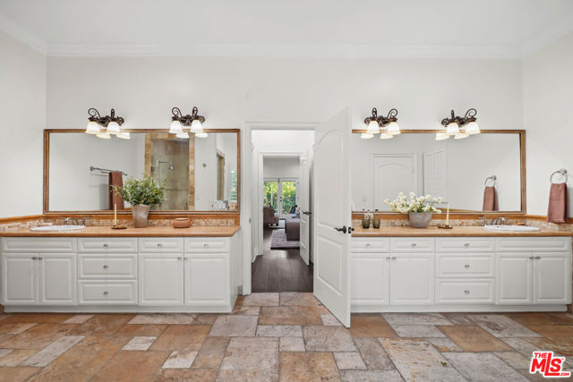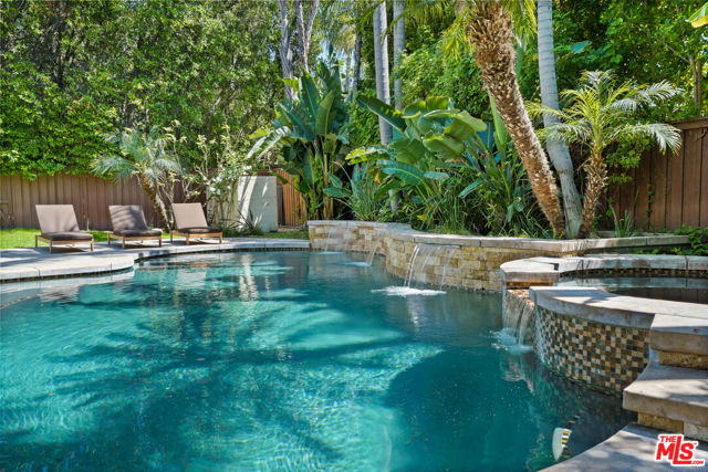 Welcome to 'La Buena Vida!' A spectacular Spanish Mediterranean estate crowning a magnificent, 1/4 acre lot in one of the Valley's premier destinations. The home resides in divine harmony with its organic, verdant environment of towering trees and sprawling lawns. The gated and hedged exterior with circular drive offers extraordinary curb appeal with a finely manicured fusion of floral and greenery. Inside, a grand entrance with soaring ceilings introduces a unique symmetry of old world elegance with modern world conveniences with styling distinctive and comfortable; romantic and refined. Exemplifying bespoke craftsmanship at every turn, rich, luxurious elements reference classic design with a flexible floorplan offering gracious transition from room to room. Rich wood and travertine flooring grace the living areas. Baths are dressed in fine tile, lighting and fixtures. Ideal for the entertaining, the expansive dining room lends itself ideally to both formal and informal gatherings of all sizes and occasions. Style, form and function unite in the epicurean kitchen, anchored by an Imperial professional grade range with three sinks, two dishwashers and center island. Glass atrium doors bring the outdoors in revealing an extraordinary, private oasis where an array of dining and lounging patios, full service outdoor kitchen and BBQ, fireplace, pool and spa with baja bench and flowing waterfalls, and sprawling lawn embody the coveted California lifestyle of endless al fresco leisure. The ideal venue for warm, relaxed poolside lounging by day, cool, intimate gatherings and lavish entertaining under the stars by night. Five bedrooms and bonus room with five baths including a lux primary suite with private patio round out the comfortable accommodations. Located in the Riverside Charter School District and just moments from the beloved Sherman Oaks Rec Center and Hazeltine Park, houses of worship and all the best of what acclaimed Sherman Oaks has to offer. Welcome!