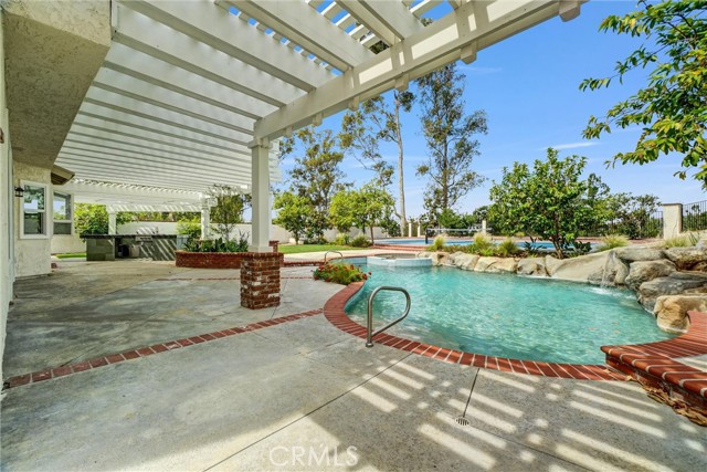 Set on an expansive over half-acre view lot, this exceptional East Lake Village residence offers a rare blend of privacy, space, and resort-inspired living — highlighted by a private pickleball and basketball court, an incredibly unique amenity rarely found in Yorba Linda. The backyard is designed for unforgettable entertaining and everyday enjoyment, featuring a beautifully reimagined pool and spa with a striking rock waterfall and slide, all set against scenic views that create a true private retreat. Inside, a comprehensive renovation has transformed the home with refined, modern finishes throughout. The thoughtfully designed floor plan offers 4 bedrooms and 3 bathrooms, enhanced by new luxury flooring, updated stair railings, recessed lighting, and a completely redesigned gourmet kitchen ideal for both casual living and entertaining. The primary suite serves as a peaceful escape, showcasing a stunning new bath and a bedroom positioned to capture picturesque views. Additional features include a 3-car attached garage with epoxy flooring and a move-in-ready presentation that allows immediate enjoyment of this exceptional property. Designed for gathering, entertaining, and creating lasting memories, this is truly the home everyone will want to visit. Residents of East Lake Village enjoy scenic lake paths, a fitness center, sport courts, and a variety of year-round community activities.