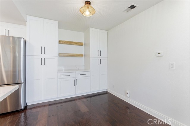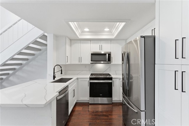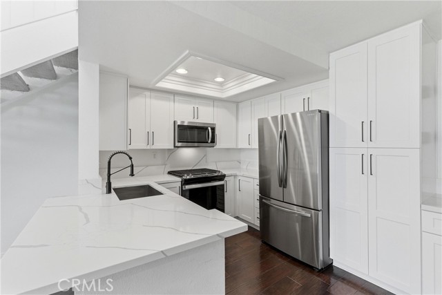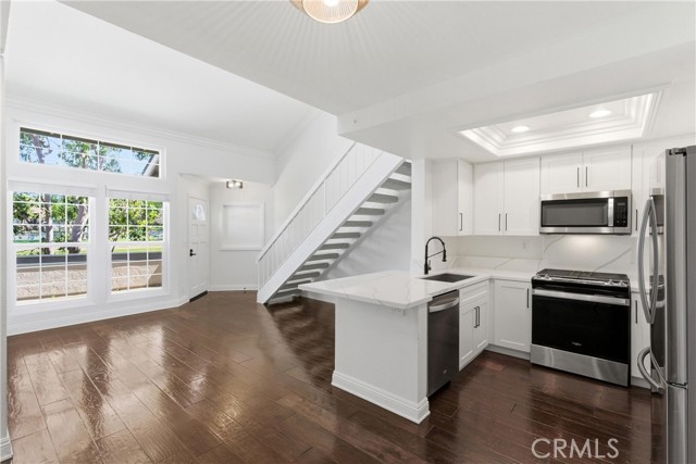 Welcome home to this open airy fully remodeled two bedroom condo in Laguna Niguel. The location of this unit sits in the back of the community with no one above you. You have a private deck with no units in front of you which allows you to overlook the private tree lined community park great for entertaining or relaxing. Upon opening the front door you will notice the high vaulted ceilings with windows that add tons of natural light. New interior paint throughout.The remodeled kitchen has stainless appliances, brand new cabinets, quartz counters, and a dry bar in the dining room. All new light fixtures. Less than two years old carpet in both bedrooms. Primary bedroom has two nice size mirrored closets. Secondary bedroom has a walk in closet. Fully remodeled bathroom with walk in shower. Single enclosed garage with opener. Rent includes refrigerator, stackable washer/dryer, and trash service. Located in the private gated community of Village Niguel Terrace. Where you will have access to the beautiful community pool, spa, tennis courts, dog park, and private park for the community. This location of Laguna Niguel offers tons of shopping such as Costco, Target, Sprouts, Whole Foods, Home Depot, movie theaters, 24 Hour Fitness and Lifetime Fitness within a three mile radius. Award-winning school district, great dining options and close proximity to the 73 and I-5, minutes to Laguna Beach and Dana Point.