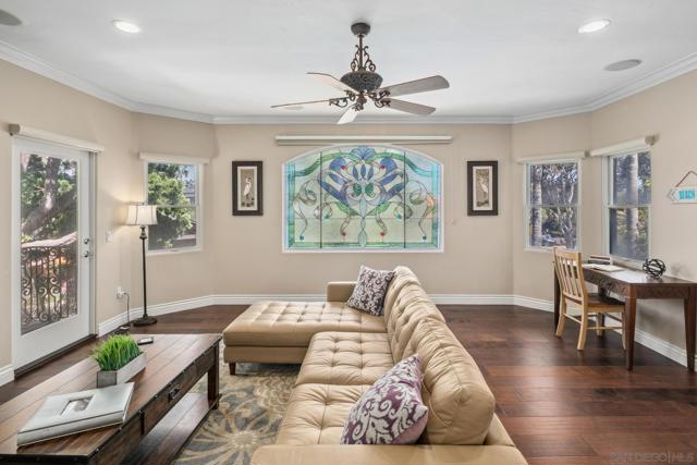 California Coastal Elegance – Just Steps from Coronado Beach. Welcome to this stunning California classic, originally constructed in 1959, reimagined with a major remodel in 2001, and thoughtfully upgraded by the current owner in 2016. Located just steps from the Pacific Ocean, this spacious and private residence offers the very best of coastal living, with 173 feet of rare street frontage — more than double the average in the area. From the moment you enter the gated courtyard, this beautifully rebuilt home welcomes you into a serene retreat that seamlessly blends timeless charm with modern amenities. Inside, you'll find five bedrooms and five baths, including an attached studio, private office, or ADU with its own entrance and full bath. A grand, curving wrought iron staircase leads to an upper-level family room complete with a wet bar and mini fridge — perfect for entertaining or relaxing. The generous master suite features a double-sided fireplace and a spa-inspired en suite bathroom. Enjoy panoramic ocean views from the sun-drenched rooftop deck, an ideal spot for watching sunsets or 4th of July fireworks. The gourmet kitchen includes stainless steel appliances and high-end granite countertops, while multiple entertainment areas — including a wrap-around patio with a cozy fire pit — offer endless opportunities for indoor-outdoor living. Whether you're hosting guests or enjoying quiet evenings by the sea, this exceptional home has it all. Bring your most discerning buyers — this is a true Coronado gem.