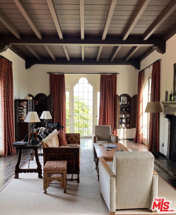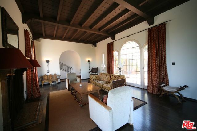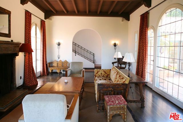 Available FULLY FURNISHED SHORT TERM ONLY. Available May 1st. Contact Listing Agent for further availability. The Jordan residence 1925 by W.C. Tanner architect. Spectacular completely private gated Spanish celebrity compound w/ pool, guest house, pool house, and fantastic city and Griffith Park views. Magnificent main house impeccably remodeled w/ taste and style. Large living room has wood beamed ceiling, formal dining room, great kitchen, large family room, huge pool, gardens, pool cabana, and separate guest house with separate street entrance w/ own 2 car garage. 3rd bedroom in main house currently configured as Office. Fourth Bedroom is on lower level and has own entrance. Guest House is a studio loft.