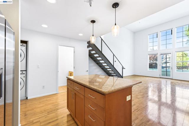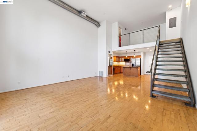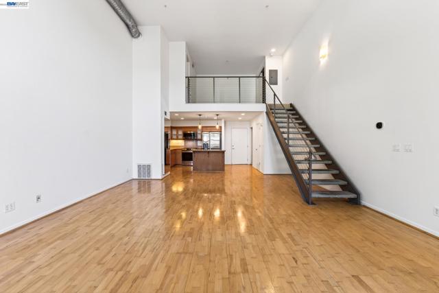 Gorgeous loft with an amazing open floor plan, 17 foot high ceilings, lots of natural light, and high end upgrades in a very central location, in which you can walk to/or a short drive to just about anything! Features include: Granite slab counters, breakfast island, new stove, newer refrigerator, micorwave, dishwasher and pantry. Spacious living room features lots of windows and wood flooring; Large bedroom with beber carpeting and closet. Spacious primary bathroom with stall shower and remodeled half bathroom downstairs. Balcony off family room to enjoy the beautiful surroundings. Secure parking space in the garage; Ryland Park has lots of activities and features basketball courts, lawn area, playground, Rotary Ryland Pool, and a dog park; Easy access to San Jose University, San Jose Airport, SAP Center, VTA, Caltrain, Highways 87, 101, 280, 880 and more! Welcome Home!