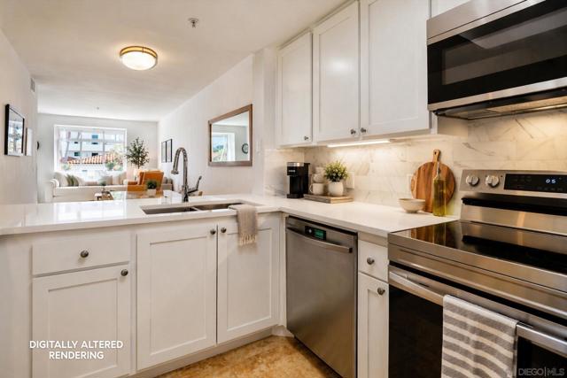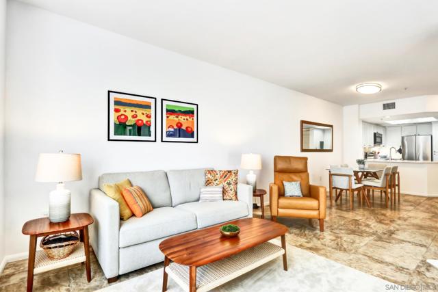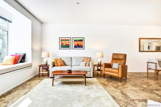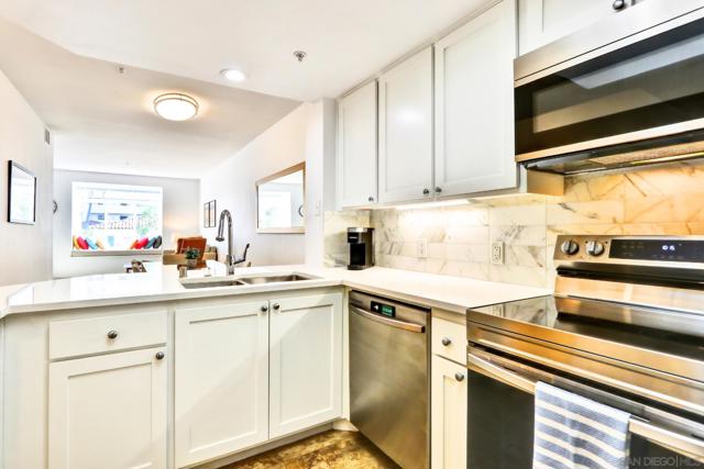 Welcome home to the sought-after Laurel Bay community on 5th Avenue, just steps from iconic Balboa Park. From the moment you enter, you’re greeted by a bright, airy living space filled with natural light and peek views of the park. A private patio offers the perfect setting for morning coffee or evening relaxation with serene greenery from Balboa Park as your backdrop. A charming bay window seat creates a cozy nook beside the fireplace ideal for unwinding. The beautifully remodeled kitchen blends modern style with everyday functionality, featuring new stainless steel appliances, a marble backsplash, custom cabinetry, and sleek white quartz countertops. This meticulously maintained one-bedroom condo offers a true sense of retreat, complete with a spacious updated bathroom, walk-in closet, in-unit washer/dryer, and convenient proximity to the elevator. Laurel Bay is a tranquil, private community with resort-style amenities including a pool and spa, fitness center, business center, grand lobby, lush courtyard, and an inviting lounge with a grand piano for entertaining. Ideally located in the heart of Bankers Hill, you’re minutes from Downtown, Little Italy, Hillcrest, and North Park with easy access to farmers markets, coffee shops, dining, and boutique retail. This is a rare opportunity to enjoy elevated urban living in one of San Diego’s most desirable neighborhoods.