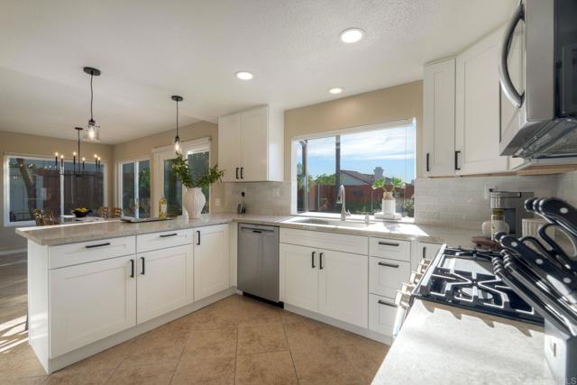 This lovely Rancho Peñasquitos home has been meticulously maintained and showcases true pride of ownership. Move-in ready and ideally located on a corner lot in a cul-de-sac, the property features over $110,000 in recent improvements. As you enter, you’ll appreciate the vaulted ceilings, plantation shutters, and abundant natural light. The newly remodeled kitchen boasts quartz countertops, all-new shaker cabinetry, stainless steel appliances, pendant lighting, and bar seating. The downstairs features a cozy family room with a fireplace, along with a beautifully remodeled half bath and laundry room, complete with quartz counters and shaker cabinetry. Upstairs, both the secondary and primary bathrooms have been tastefully remodeled with dual vanities, stylish mirrors, wave-pattern tile, new cabinetry finished with premium Awlgrip paint, and granite countertops. Additional highlights include new roof underlayment (2023), a three-car garage with epoxy flooring, newer HVAC, and a newer water heater. The spacious backyard is perfect for entertaining, gardening, and enjoying San Diego’s stunning sunsets. Conveniently located with easy access to freeways, shopping, parks, and top-rated Poway Unified schools.