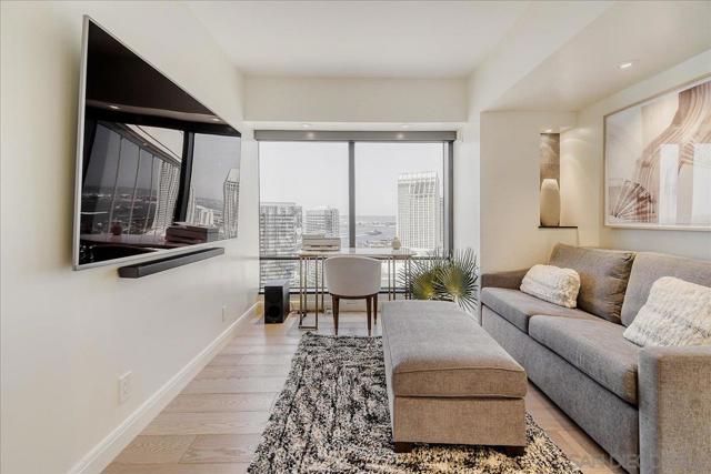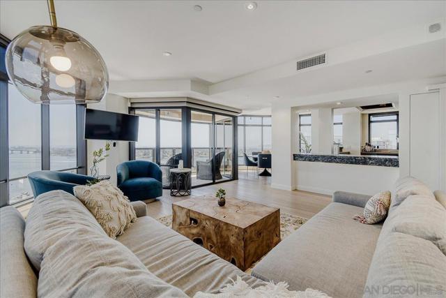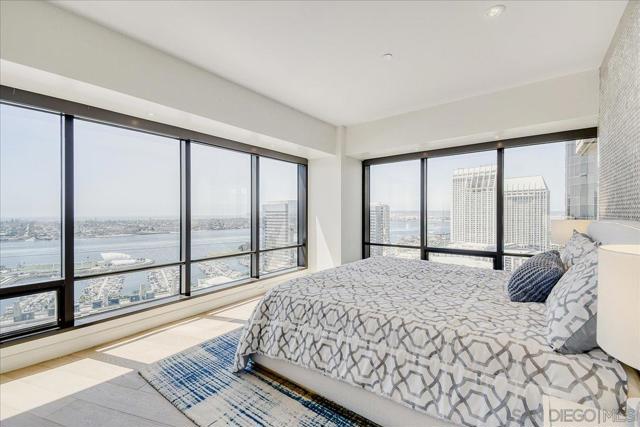 Welcome to the iconic Harbor Club, featuring this exquisitely upgraded 2-bedroom, 2-bath residence in a highly sought-after bubble unit layout. Designed with a focus on elegance and comfort, the interior showcases high-end, refined finishes, thoughtfully curated upgrades, and automatic blackout shutters throughout for both privacy and convenience. Expansive windows frame breathtaking panoramic views of the downtown skyline, The Rady Shell at Jacobs Park, and across the bay to Coronado. Located in the prestigious Marina District, this residence offers effortless access to the waterfront, premier dining, and San Diego’s most vibrant attractions. Harbor Club residents enjoy world-class amenities including 24-hour concierge, an elegant clubhouse, resort-style pool and spa, and inviting outdoor fire features delivering a truly elevated urban living experience.