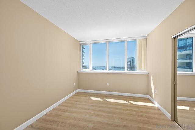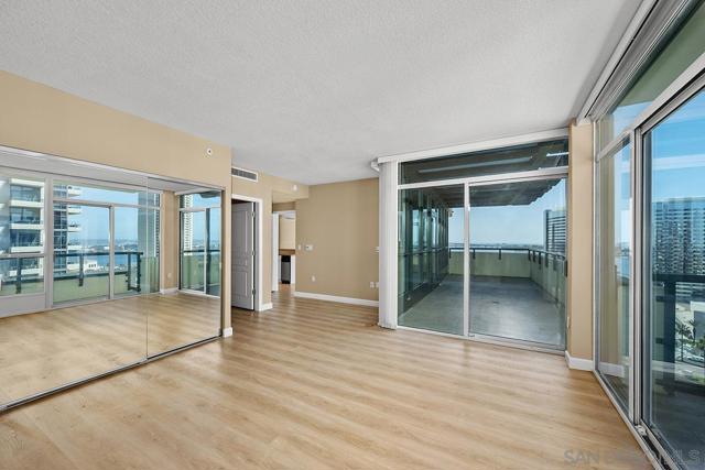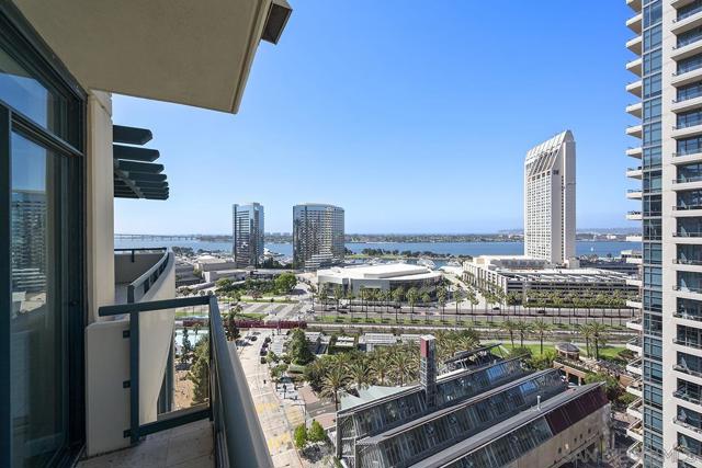 Few addresses in Downtown San Diego deliver this kind of perspective. Positioned on the 18th floor of Horizons, this southwest corner residence offers sweeping views of the bay, ocean, Point Loma, and Coronado that stretch as far as the eye can see. Whether you're watching sailboats drift across the water or the city lights come alive at dusk, the scenery here changes by the hour and never gets old. Three rare balconies - one measuring 25x10 - are among the home’s defining features, accessible from nearly every room, including the primary bedroom, and offering effortless access to breathtaking views. Floor-to-ceiling windows fill the open-concept living space with natural light throughout the day, while easy-care flooring and a fireplace create a warm, grounded atmosphere. The well-appointed kitchen features stainless appliances, generous cabinetry, and recessed lighting, a setup that works equally well for quiet weeknight dinners and larger gatherings. The primary suite connects to the main balcony and has its own private outdoor space, a rare bonus at this level. The ensuite bath includes dual vanity, soaking tub, and step-in shower. The second bedroom functions beautifully as a guest room or a dedicated home office with an inspiring backdrop. Two side-by-side parking spaces near the elevators and a storage unit complete the package. This is Marina District living at its finest, where the views are genuinely part of the lifestyle. The Horizons boasts an unbeatable location in the Marina District, placing you steps from the New Children’s Museum, the scenic Martin Luther King Jr. Promenade, and Seaport Village. And with both a children's park and a dog park right behind the community, fun is always within easy reach for kids and furry friends alike. Resort-style amenities include a pool, spa, fitness center, concierge, security, billiard room, conference room, and guest parking. Convenience is built in, with an array of retailers just an elevator ride away—a bank, tanning salon, dry cleaners, Postal Annex, and a coffee/sandwich shop. Plus, you're within walking distance of bus and trolley lines, top-rated restaurants, shopping, and a 24-hour Ralphs Signature Market just around the corner.