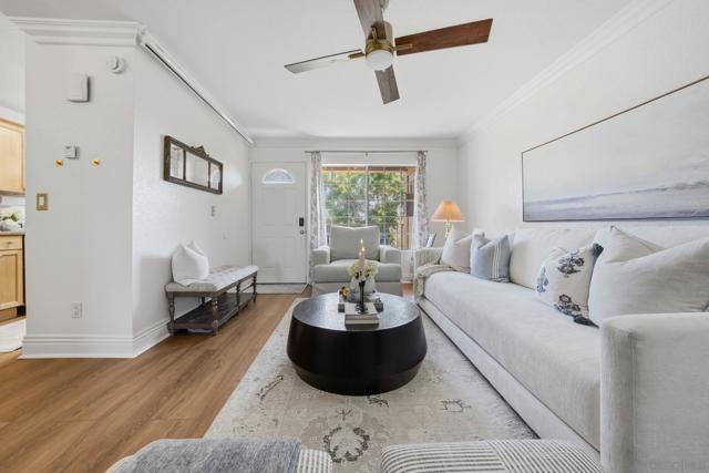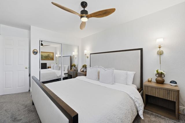 Bright and updated 2-bedroom, 1.5-bath end-unit condo in the VA-approved Presidio Park community. This single-story home offers an open layout filled with natural light, featuring vinyl plank flooring, modern lighting, and a thoughtfully updated kitchen with stainless steel appliances. The inviting living area includes a cozy fireplace, creating a warm and comfortable space to relax or entertain. The functional floor plan also features renovated bathrooms, in-unit laundry, ample storage, an assigned carport, and a second parking space. Ideally located in the heart of the College Area near Rolando Village, you’re just minutes from SDSU, local parks, shopping, dining, and major freeways. Walking distance to Clay Elementary and close to neighborhood favorites, this home offers both convenience and a strong sense of community.