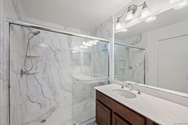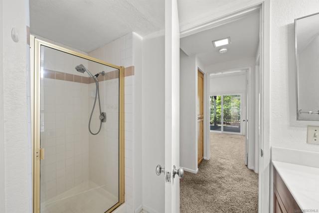 Located in the desirable Fashion Hills community, this move-in-ready townhome is situated along the greenbelt and offers a peaceful setting with convenient access to major freeways, shopping, dining, and more. The living room features a fireplace and opens to the dining area and kitchen, creating a comfortable and functional main living space. The kitchen includes a generously sized pantry, while sliding glass doors off the living and dining areas open to a private deck overlooking the greenbelt. Downstairs, both the primary and secondary bedrooms feature sliding glass doors that open to a private, enclosed deck with greenbelt views, creating a peaceful outdoor retreat. The primary bathroom features a recently renovated shower enclosure, while the secondary bath includes a generous walk-in storage area. Additional storage is found throughout the home. Upstairs, a third bedroom with French doors offers flexible space for guests, a home office, or a bonus room. Enjoy resort-like amenities, including a pool, spa, tennis courts, and BBQ area, while a low HOA of just $272.00 adds exceptional value. The Fashion Hills community is thoughtfully designed with mature trees and lush landscaping, creating a setting that feels like a private park. Ideally located with easy freeway access and just minutes from beaches, downtown, USD, Fashion Valley, and Mission Bay, this home offers privacy, convenience, and an excellent central San Diego location.