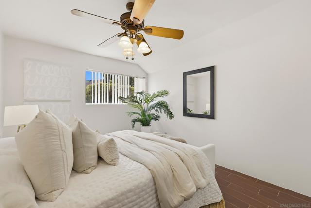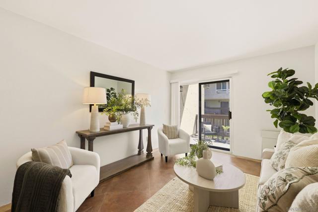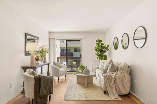Welcome to this beautifully refreshed ground floor retreat in the sought after Mission Verde community. This stylish 1 bedroom, 1 bathroom residence features sleek, concrete flooring throughout the main living areas and tile in the bathroom. The kitchen comes fully equipped with a microwave, fridge, and stove/oven, perfectly situated for both daily living and entertaining. Accessibility is a breeze with elevator access from the parking area directly to the first floor, though the secure building offers multiple entry points for your convenience. The home features a patio with direct access to the open outdoor area and is located just a very short stroll from the community pool and spa. This unit is a storage lover's dream, featuring a dedicated storage room and a reserved parking spot. Residents at Mission Verde enjoy premium amenities including tennis and basketball courts, five BBQ areas, and a secure building with fob access and an elevator. This property offers the perfect blend of comfort and convenience in the heart of San Diego.