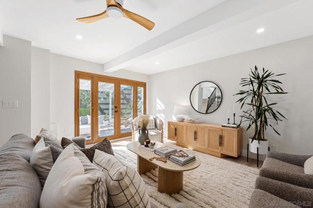 Experience this beautifully remodeled 2,268 sq ft Spanish-style home, ideally situated on a spacious canyon lot in the highly sought-after neighborhood of Kensington. Blending classic 1930s charm with thoughtful modern updates, this light-filled residence showcases timeless picture windows, wide-plank flooring, recessed lighting, and a soft, neutral palette throughout. The inviting galley-style kitchen offers abundant cabinetry and counter space, accented by a sleek glass tile backsplash and refined finishes. The serene primary suite serves as a true retreat, complete with a spa-inspired bathroom featuring a stunning tiled shower and contemporary details. Downstairs, a versatile bonus space provides endless possibilities—perfect for a family or game room, home office, gym, or guest quarters. Step outside to a covered patio ideal for entertaining, while the canyon setting adds a sense of privacy and lush natural beauty. Plus owned solar! Located in one of San Diego’s most desirable communities, Kensington offers charming local shops, dining, parks, and convenient freeway access. This exceptional home is a rare opportunity you won’t want to miss.