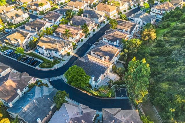 Located within the gated community of Canyon Ridge in the heart of Carmel Valley, this end-unit 3-bedroom, 2.5-bath townhome offers 1,859 sqft of well-balanced living space designed for everyday comfort & functionality. The main level is centered around the home’s living spaces, where the living room connects seamlessly to the kitchen & adjacent family room, creating a natural flow for both daily living & gathering. The kitchen is equipped with newer stainless steel appliances & opens to the family room, where a projector screen is installed above a beautiful fireplace. The 2nd level features a primary suite with vaulted ceilings, large walk-in closet with custom shelving, & ensuite bathroom. The secondary bedrooms provide flexibility for guests or work-from-home needs & the spacious laundry room is an added convenience. Just off the main living area, the backyard offers a private outdoor setting with lush landscaping & ample space for outdoor dining & entertaining, creating an easy extension of the home’s interior living spaces. Additional highlights include newer American Walnut hardwood flooring, updated lighting, neutral paint, & custom window treatments. Centrally located, the community features a pool, spa, & numerous grassy spaces while being just minutes from One Paseo & The Village at Pacific Highlands Ranch. Situated near top-rated schools including Canyon Crest Academy and Torrey Pines High School, along with nearby parks and coastal access, this home encompasses everything that makes Carmel Valley such a sought-after place to live.
