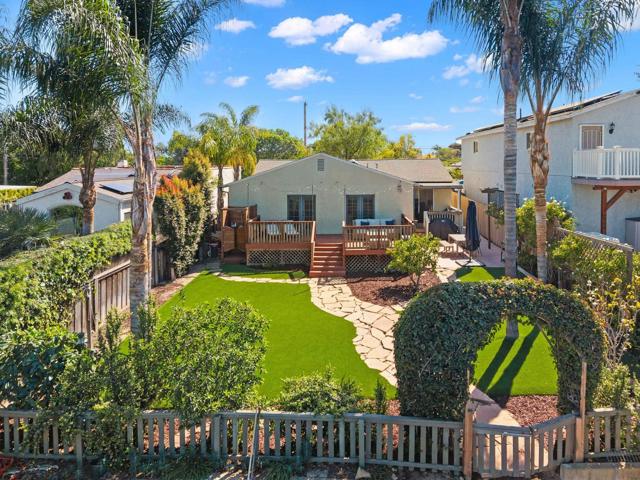 Tucked away on one of Normal Heights’ most coveted streets, this exceptional canyon property offers a rare combination of privacy, scale, and sweeping views on over a quarter acre. Set above the canyon, the home captures a true sense of space and serenity—something seldom found in this central, walkable neighborhood. Inside, the single-level layout is designed for effortless living, with an open-concept floor plan that seamlessly connects the kitchen, dining, and living areas. The beautifully updated kitchen features clean lines, ample cabinetry, stainless steel appliances, designer lighting, and a generous breakfast bar that flows naturally into the main living space—ideal for both everyday living and entertaining. The layout lives larger than its footprint, with a natural flow that feels both open and inviting. Natural light fills the home, while large French doors frame picturesque greenery and canyon vistas beyond. The indoor-outdoor connection continues as you step out to an expansive backyard retreat, where lush landscaping, mature trees, a view deck, and multiple seating areas create a private setting to relax, host, and take in the views. The elevated positioning of the lot enhances both privacy and the overall sense of retreat. The property’s oversized lot offers endless potential—whether it’s expanding the home, adding an ADU, or creating a resort-style outdoor experience. All of this, just moments from the best of Adams Avenue—local dining, coffee shops, and neighborhood charm—while still feeling worlds away.