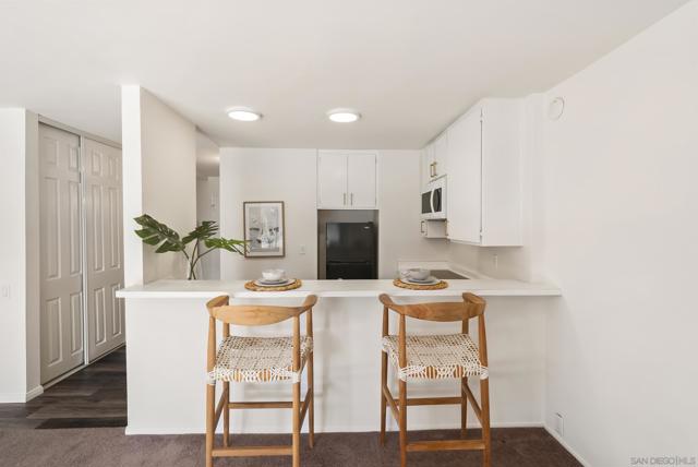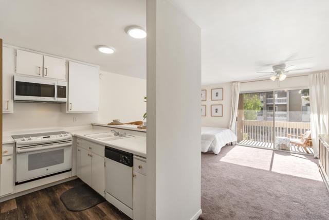 Affordable coastal living in the heart of Pacific Beach. VA approved! Resort-style studio at The Plaza delivers exceptional value w/ a full kitchen, secure parking space #137 in a gated garage & an oversized 5 ft X 7 ft patio overlooking the pool/courtyard on the quiet side of the building. Walk to dining, shopping, nightlife along Garnet Ave. Enjoy easy access to the beach less than 2 miles away. To create immediate financial advantage, w/ a full price offer, Seller offering Buyer $10,000 total credit toward HOA dues & closing costs. (suppl) Inside, the thoughtfully designed layout lives larger than expected, featuring a spacious entry ideal for storage, a full-size kitchen with eat-at bar, and an open living area with flexibility for sleeping, living, and work-from-home zones. Recent upgrades include a new electric panel, updated bathroom with quartz counters and modern finishes, and upgraded lighting throughout. The Plaza is known for its unmatched amenities, including 4 pools, 5 tennis courts, gym, sauna, community theater/ library/ and common area spaces surrounded by beautifully maintained grounds that create a true resort-style environment. Whether you're a first-time buyer, active duty military, investor, or looking for a low-maintenance beach retreat, this is one of the most compelling value opportunities in all of Pacific Beach.