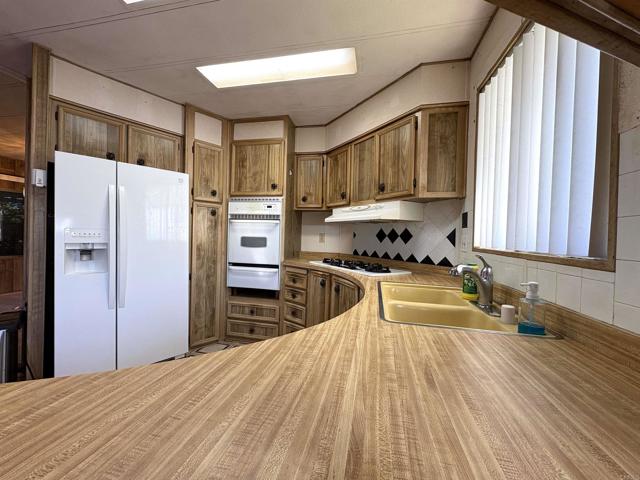 1440sf home in one of the most desirable senior communities. 2 bed, 2 bath home with a fantastic floor plan. Remodel this home to make it your own palace. Low $799 space rent, under rent control. The very large living/dining room area is perfect for family/friends entertaining. Very spacious kitchen includes all the appliances; refrigerator, dishwasher, stove top/oven. There is a bonus room which will make the perfect breakfast room, TV room, office; the possibilities are endless for this room. Main bedroom suite features a large ensuite bathroom and a walk-in closet. Guest bedroom with a walk-in closet, guest bathroom. The washer and dryer are included in the indoor laundry room. Central air and heat, 2 storage sheds and a large driveway/carport. This home is situated in the upper part of this stunning senior community, and it features views of the mountains. Don't delay, come see it today!