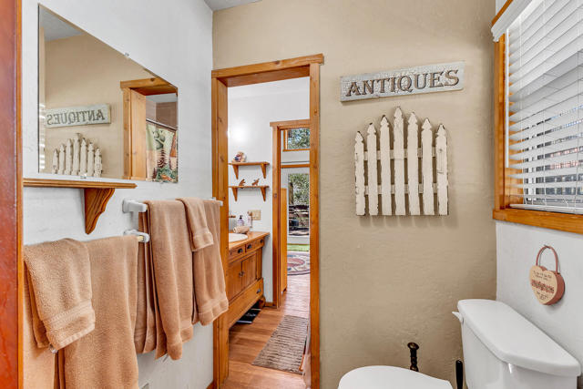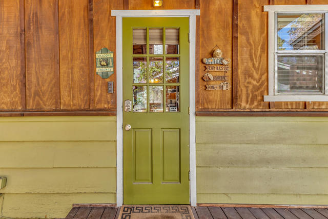 ''Whispering Pines'' is a timeless mountain retreat where classic 1958 character meets peaceful forest living. Wrapped in warm knotty pine walls, ceilings, and original kitchen cabinetry, this cabin radiates authentic charm that's becoming harder to find. Step inside to an inviting open kitchen and dining area, where vaulted ceilings and a brick fireplace create a cozy yet airy gathering space. Just beyond, the living room continues the rich pine aesthetic, anchored by a propane stove and bathed in natural light from multiple windows. The perfect setting for snowy evenings or quiet mornings with coffee. The generous bedroom offers privacy and convenience with direct access to the 3/4 bath. A glass door leads you onto the back deck, where you'll overlook a spacious backyard dotted with pines and oaks. An ideal setting for entertaining, gardening, or simply letting the mountain air melt the day away. Tucked close to town, Idyllwild County Park, and scenic hiking trails, this property offers the perfect balance of accessibility and escape. Nature awaits at Whispering Pines where your mountain sanctuary is calling!