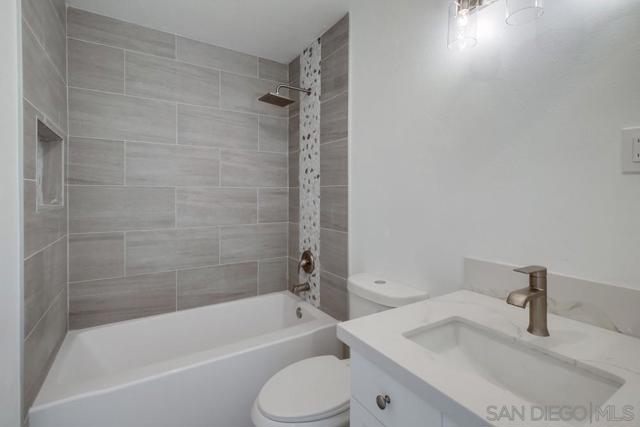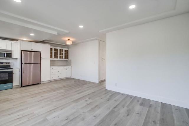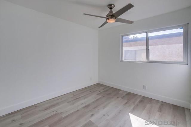 VA-approved complex! This newly remodeled top-floor unit is ready for you to move in. It features vinyl wood flooring throughout, new kitchen cabinets, quartz countertops, stainless steel appliances, newer windows, recessed lighting, upgraded bathrooms with tiled showers, and ceiling fans. The unit includes a one-car garage and additional parking. Conveniently located with easy freeway access, it is just 15 minutes away from downtown, SDSU, USD, and the beaches.