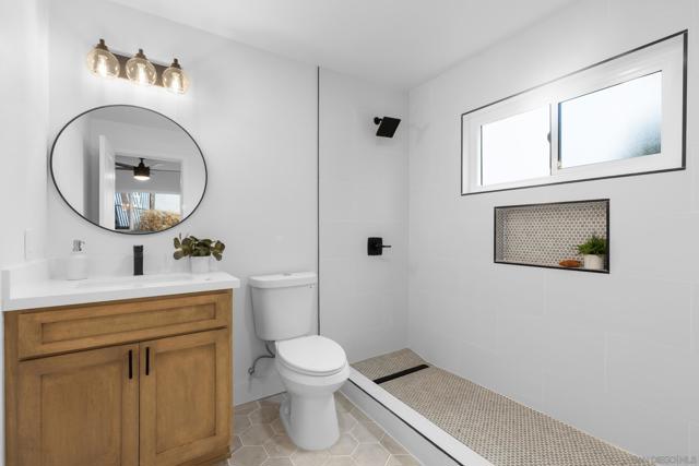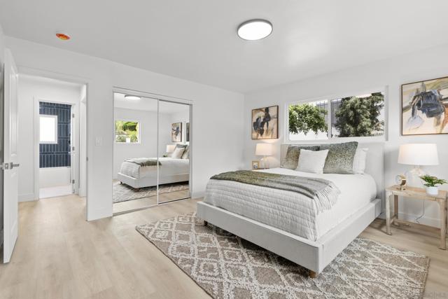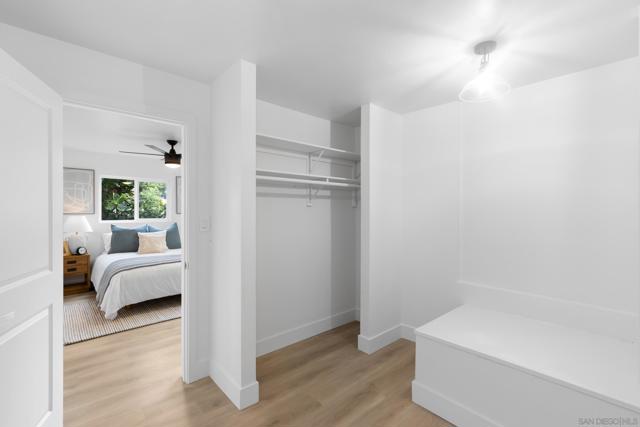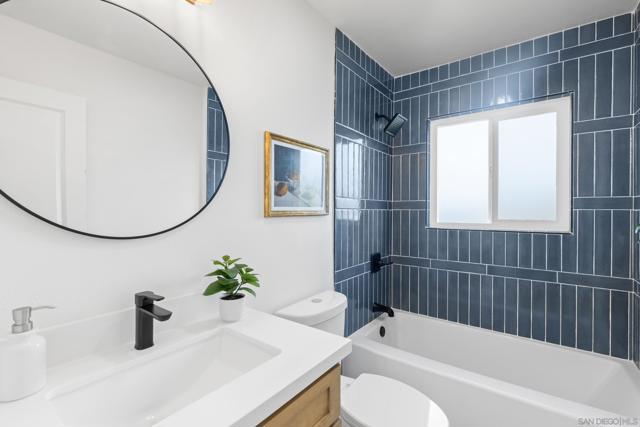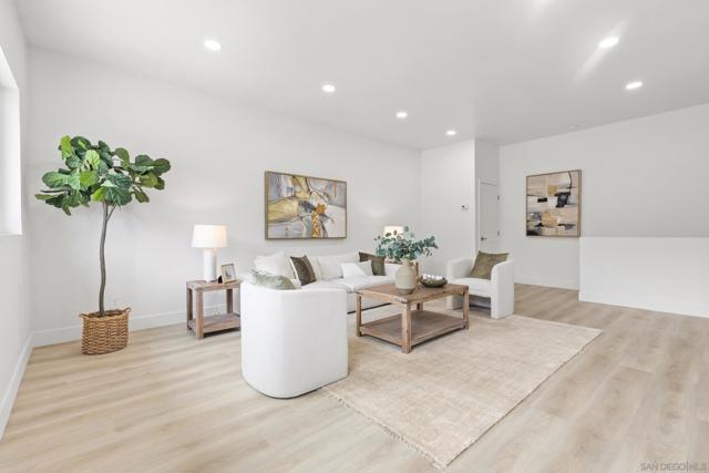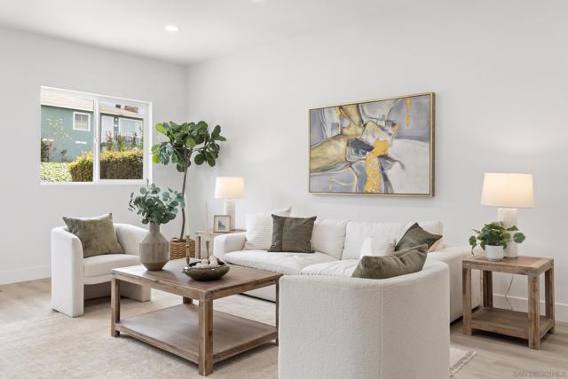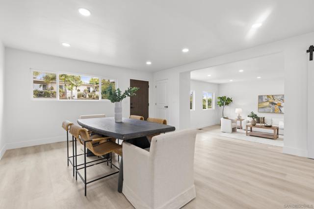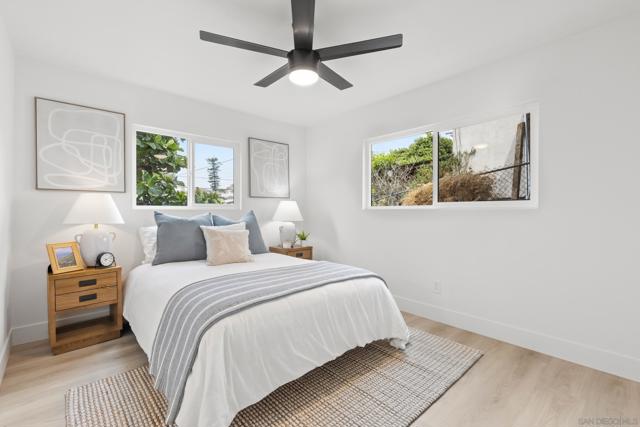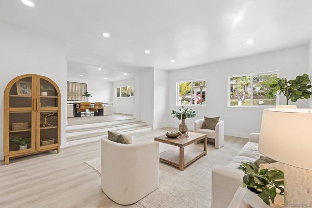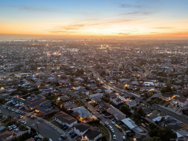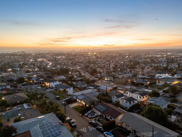 Stunning remodeled Valencia Park home with sunset views, over 1,800 sq ft, and incredible flexibility including 3 bedrooms plus up to 2 optional bedrooms. Featuring a downstairs layout ideal for multigenerational living or potential ADU conversion, plus PAID SOLAR for energy efficiency. The home offers a spacious and functional layout with a large chef’s kitchen featuring abundant cabinetry, generous counter space, and a walk-in pantry, flowing seamlessly into the main living areas. The lower level includes the primary suite with a large walk-in closet and built-in bench seating, along with two optional rooms and a separate living space—perfect for extended family, guests, or future conversion opportunities. Additional highlights include dual pane windows, central HVAC for year-round comfort, and a walk-in basement providing valuable extra storage. A rare opportunity to own a move-in ready home with space, versatility, and beautiful views in San Diego.