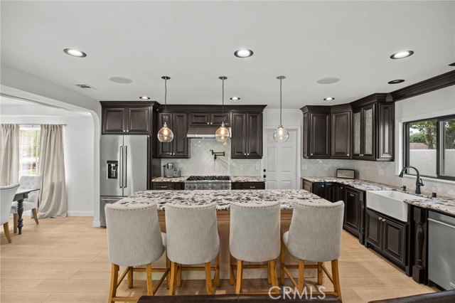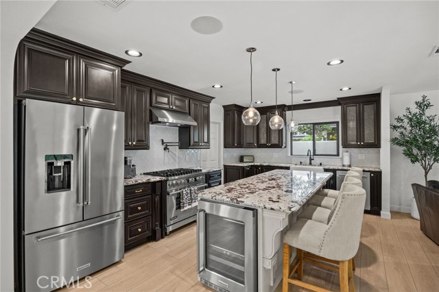 Nestled in one of West Covina’s most sought-after neighborhoods, this beautifully upgraded single-story pool home is located on a rare double cul-de-sac, offering both privacy and minimal through traffic. Designed with both comfort and entertaining in mind, this home showcases a seamless blend of luxury and functionality. Step inside to a fully remodeled interior featuring new flooring, updated fixtures, crown molding, and built-in ceiling speakers throughout. The heart of the home is a stunning chef’s kitchen, complete with a premium Viking range, six-burner stove, wine refrigerator, and modern finishes—perfect for both everyday living and hosting. Enjoy multiple gathering spaces with dual fireplaces, creating warm and inviting areas for relaxation. The home extends effortlessly outdoors to a resort-style backyard, featuring a newly upgraded pool with updated plaster, tile, pump, and filter, along with professionally re-landscaped grounds and ambient lighting—ideal for entertaining year-round. With two fully remodeled bathrooms, thoughtfully designed upgrades throughout, and exceptional indoor-outdoor flow, this property truly defines Southern California living at its finest. This home is shown by appointment only.