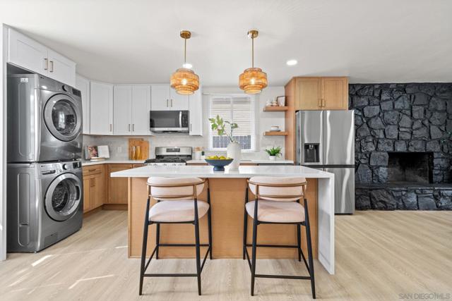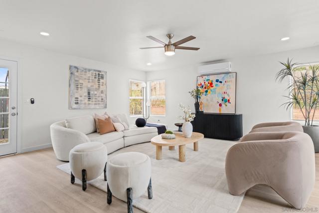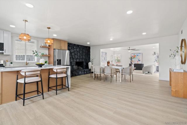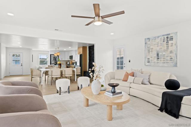 Welcome to this beautifully updated 3-bedroom, 2-bathroom home in the heart of Clairemont’s coveted "Mount Streets". Offering approximately 1,518 sq ft of single-story living space on a 6,000 sq ft lot, this home perfectly blends modern comfort with timeless charm. Step inside to an open-concept kitchen that flows seamlessly into the dining and living areas — ideal for entertaining or relaxing with family. The kitchen features modern updates and generous counter space, while the bright living area includes a cozy fireplace for added warmth and character. All 3 bedrooms, and both bathrooms have been tastefully refreshed with contemporary finishes. Upgraded mini splits, forced-air heating, and upgraded appliances ensure year-round comfort. The large two-car garage offers plenty of storage and even the potential to convert into an ADU. Also, with an RS 1-7 lot the potential to add an ADU in the backyard creates future value and flexibility. Outside, the expansive backyard provides endless opportunities to design your perfect outdoor retreat — from a garden to a lounge area or additional living space. Located in a highly sought-after neighborhood, this home is surrounded by top-rated schools, parks, shopping, and dining, with Mission Bay, beaches, and major freeways just minutes away. With its unbeatable location, thoughtful upgrades, and room to grow, 4065 Mount Everest offers a rare combination of location, lifestyle, and potential. Paid off Solar! Brand new roof! Competitively priced! Don’t miss your chance to own this Clairemont gem!