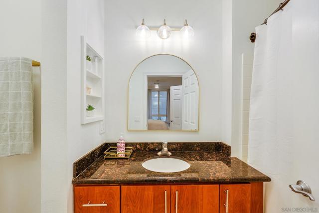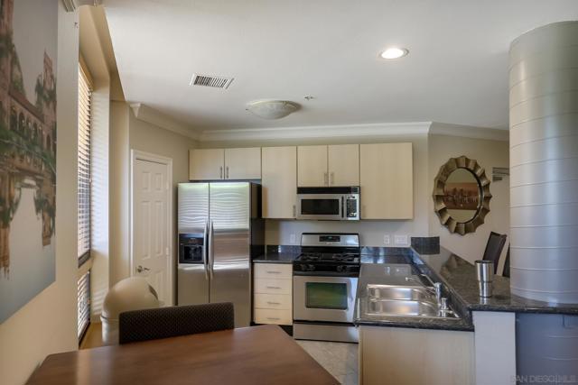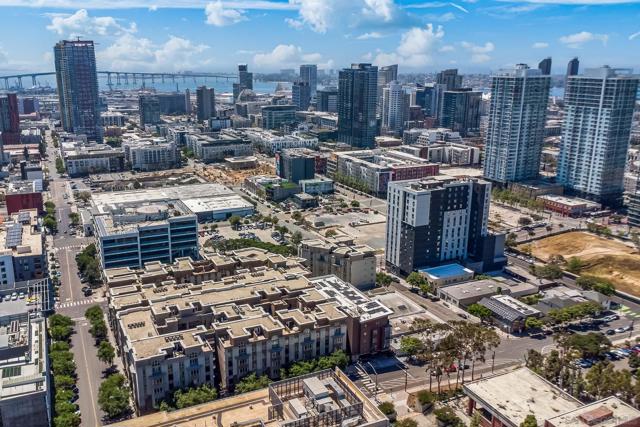 Welcome to Union Square at Broadway, a VA approved community, where comfort, style, and city convenience come together in this updated 2-bedroom, 2-bath residence. This home features a highly desirable split floor plan that ensures privacy and versatility, perfect for accommodating roommates, guests, or a dedicated home office. The interior has been upgraded with luxury vinyl plank flooring (2024), recessed lighting (2024), and a Nest smart home thermostat. The open concept living area offers direct access to a private patio, and with no neighbors on either side, provides a rare level of privacy for downtown condo living. Located in the heart of downtown, this home boasts a Walk Score over 90 and is directly across from San Diego City College with easy access to freeways 163, 5, and 94. Just two blocks away, the highly anticipated East Village Green park is under construction and will feature expansive green space, a community center, dog parks, cafés, and more. Union Square residents enjoy amenities including a fitness center with sauna and jacuzzi, BBQ areas, EV charging stations, a community room, and onsite management, along with community events throughout the year. Don’t miss this opportunity to own a move-in-ready home in one of downtown San Diego’s most dynamic neighborhoods.