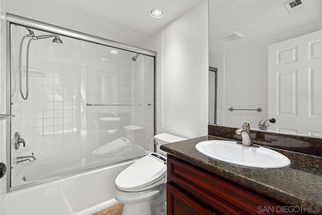 Charming 2 bedroom and 2 bathroom corner unit and upper level condo in Casablanca of Rancho Penasquitos. Enjoy ultimate privacy with no neighbors seen from your front entry and all your windows. Open concept floor plan with high ceilings. Light, bright, airy, and features open views throughout each window. Spacious living room open to your formal dining and cozy kitchen with granite countertops, upgraded cabinetry, and stainless steel appliances. Private outdoor balcony with an additional storage closet. Primary bedroom features a spacious walk-in closet and ensuite bath. Spacious secondary bedroom and second hallway bathroom with tub/shower combo. In unit washer and dryer! Water, sewer, and trash included in the rent. Two assigned parking spaces - one covered and one uncovered. Access to community swimming pool and jacuzzi and many walking trails. YMCA just seconds away plus a dog park nearby. Convenient access to freeways 56, 15, 805, and 5 and close to shopping at Rancho Penasquitos Towne Center with Vons, CVS, Starbucks, USPS, restaurants, and much more!