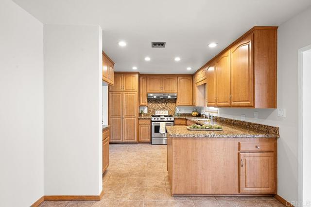 Tucked away on a private street, this hidden oasis sits on an expansive .43-acre lot offering space, privacy, and beautiful mountain views. A long private driveway welcomes you in, creating a true sense of seclusion and added parking. This unique property features an oversized detached garage with workshop, perfect for hobbies, storage, or future possibilities. The exterior and grounds offer tremendous potential to expand, enhance, or create your dream outdoor living space. Thoughtfully updated throughout, the home includes a remodeled kitchen, updated bathrooms, beautiful hardwood flooring, and a spacious bonus room with a cozy fireplace. Major improvements include a new roof (approximately 2 years), dual pane windows, central A/C, and paid-off solar, providing comfort and efficiency. Step outside and enjoy the natural setting, complete with a fruit orchard at the lower portion of the lot featuring orange, lemon, and other fruit trees—a true gardener’s delight. A rare opportunity to own a private retreat with space, privacy, and incredible potential!