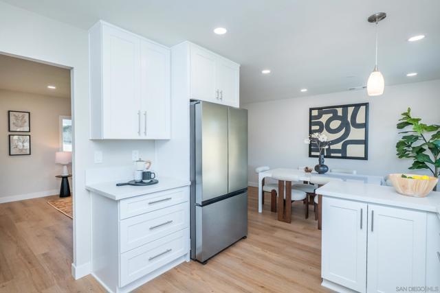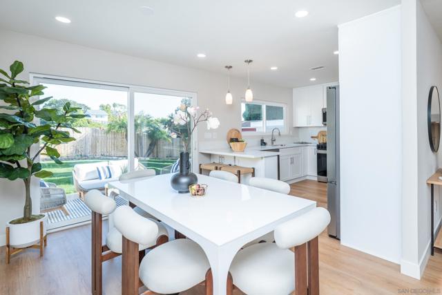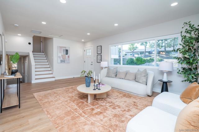 Set on a generous lot with gated RV parking and exciting ADU potential in the heart of highly coveted University City. This tri-level residence has been thoughtfully redesigned, expanded, and refined inside and out to create a home that feels cohesive, comfortable, and move-in ready. Offering four bedrooms, 2.5 baths, and 1,868 square feet of expanded living space, the home balances flexibility with timeless design. At the center of the home is a beautifully reimagined kitchen with quartz countertops, all-new stainless steel appliances, and a convenient seating peninsula overlooking the expansive grassy backyard and patio. The permitted oversized family room expansion is huge, with its own wet bar and beverage/wine refrigerator, cozy fireplace, and downstairs half-bath, offering a retreat where everyone can relax, play, or unwind. Every ceiling has been smoothed and finished with recessed lighting throughout. Fresh interior and exterior paint in carefully selected designer tones gives the home a sharp yet timeless look. San Diego's enviable climate gets even better here, with a quiet whole-house fan, an upgraded HVAC system, and a dedicated mini-split air conditioner in the expanded family room. The result is a home that stays naturally comfortable and efficient year-round. It’s all economically powered by a 28-panel solar system, fully owned, providing immediate energy savings with no lease or monthly payment. The primary suite offers peaceful seclusion, facing the quiet backyard, complete with a wall to wall mirrored wardrobe closet and a beautifully remodeled bath featuring a spa-inspired walk-in shower. Two additional bedrooms also include mirrored wardrobe closets, while the oversized fourth bedroom with its own private walk-in closet provides flexibility for guests, a home office, or multigenerational living. The secondary bath has been fully remodeled with a new vanity and tub shower combination, continuing the home’s thoughtful and cohesive design throughout. The oversized lot includes rare RV parking, room for a pool and significant ADU potential, offering options for extended family, guest accommodations, or future expansion. And if the garage didn’t offer enough space, the oversized shed/outbuilding is perfect for storing all your toys, workshop/garden center, or finish off as an external office. Ideally located near top-performing University City High and Marie Curie Elementary, plus neighborhood shopping, and popular dining, this home is also just minutes from Westfield UTC, the Trolley at UTC, the Golden Triangle employment hub, and the beaches of La Jolla and North County. Don’t miss it!