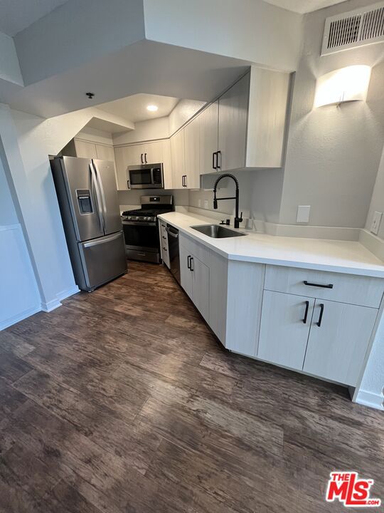 Welcome home to this 1 bedroom/1 bathroom + Loft luxury apartment in prime Beverly Grove! Located on the 4th floor of the building, Incredible view of the Hollywood hills and Hollywood sign. All new cabinets, counters, and tubs, recess smart lighting, complete smart home (door locks, lighting, and thermostat). First to live in apartment since the full remolded. Features are a fireplace, walk-in closet, designer finishes, & in-home washer/dryer. The kitchen boasts granite counters, stainless steel appliances, built in wine refrigerator and a gas range. Enjoy the large pool with plenty of loungers, fire-pits, a barbecue lounge, and sauna. Your new home features smart home technology. Your new door is secured with high-grade locks including keyless entry and high-level encryption and smart thermostats. You'll also enjoy free delivery from Erewhon and a Smart Package 365 locker system. Electric vehicle chargers are on-site. A must see!