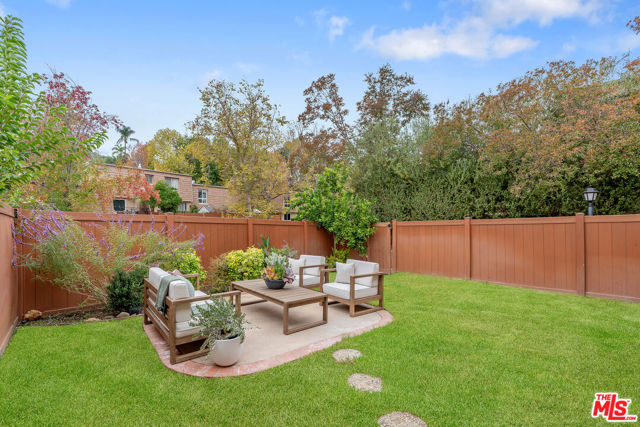 Beautifully Upgraded End Unit Townhome with One of the Largest Private Yards in the Community! Located in the heart of Agoura Hills, this recently upgraded end-unit townhome offers exceptional indoor-outdoor living with one of the largest private yards and patio in the community. The inviting floor plan features spacious living and dining rooms with walls of glass that fill the home with natural light and open to a large patio and lush backyard perfect for relaxing or entertaining. Upstairs, you'll find two comfortable bedrooms and a versatile bonus den or home office, ideal for today's lifestyle. The newly renovated bathroom showcases designer Bedrosians tiles and stylish finishes. Additional highlights include updated flooring, fresh paint, and direct access to the yard from the main living areas. The home is walking distance to the Community pool and spa! Enjoy the best of community living with the feel of a private home, just moments from parks, top-rated schools, and all that Agoura Hills has to offer. Located 1/2 mile from Liberty Canyon Trailhead for hiking & mountain biking. Easy access to 101 freeway, close to Pepperdine University, Malibu, restaurants & shopping. All this and in Las Virgenes School District.